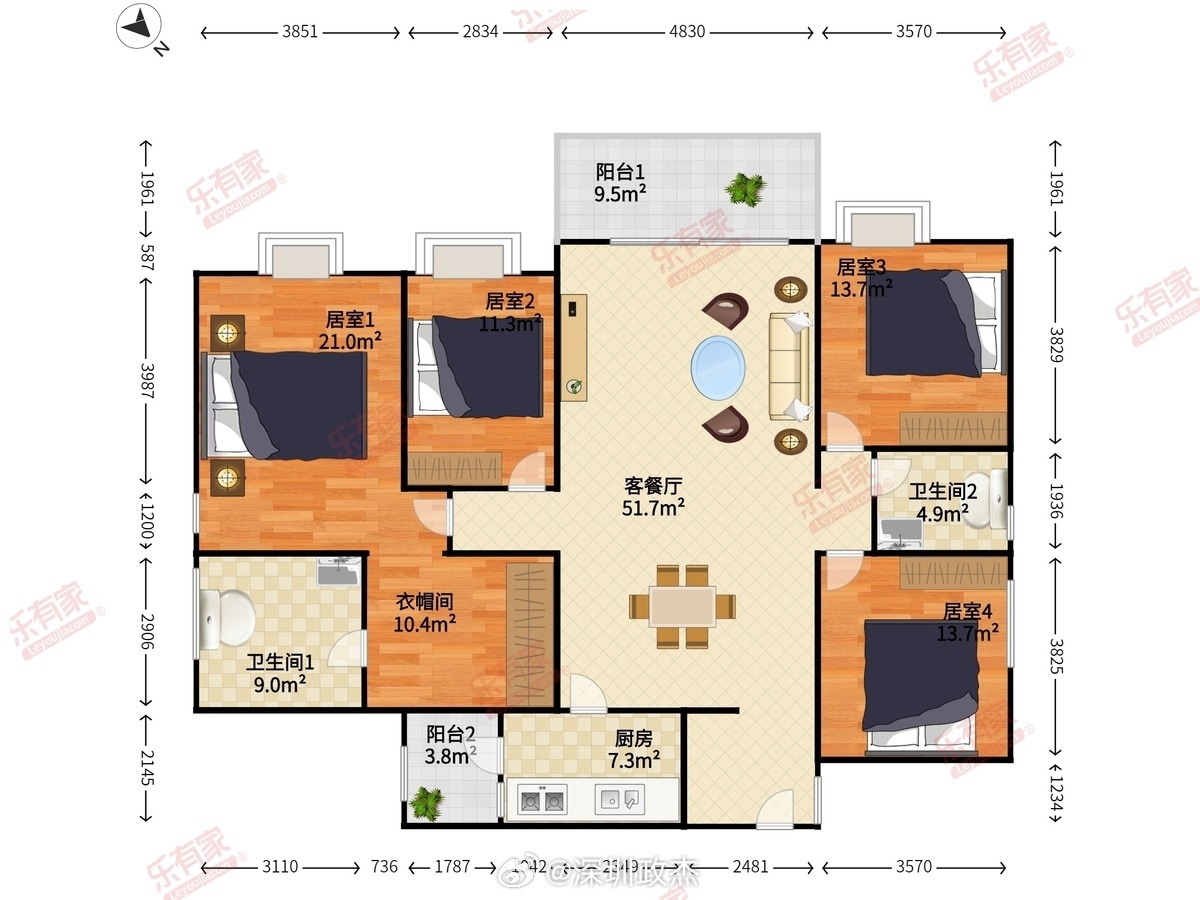 南山华润城2月份最新成交价润府一期2栋45楼,132平,东北朝向,成交价1330万