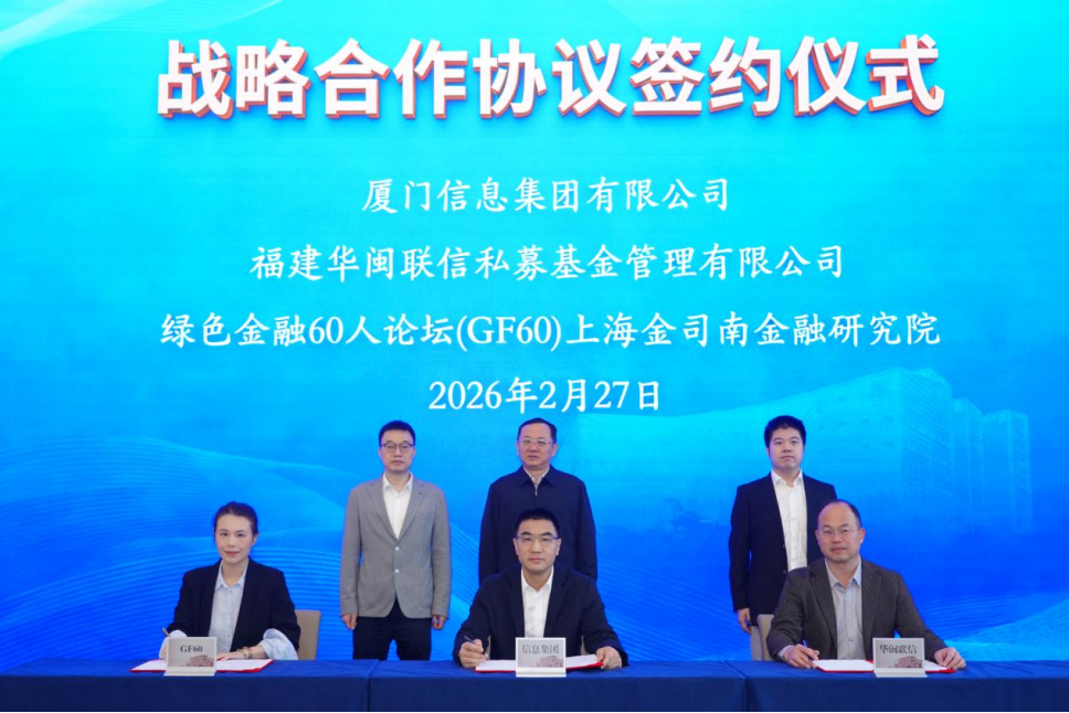 2月26日,厦门信息集团有限公司(以下简称“信息集团”)与华闽联信基金、上海金司南金融研究院正式签署战略合作协议。此次签约是厦门市2025年6月引入绿色金融60人论坛成立厦门海峡可持续产业联合会,共同打造绿色金融生态,赋能可持续产业发展以来,落地的首个产融协同基地项目,标志着华闽联信创新构建的“智库+基金+基地”发展模式进入实质运行阶段,三方将围绕可持续产业链的招商引资与产业培育、综合金融服务、国际市场开拓等领域开展全方位合作,共同助力厦门市绿色科技及人工智能产业实现高质量发展。