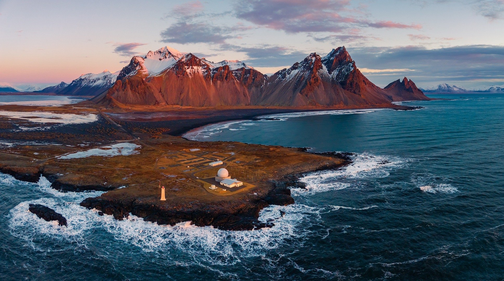 冰岛东部小镇Höfn是我们的福地,蝙蝠山每次都会展现出不同的精彩。从航拍视角灯塔