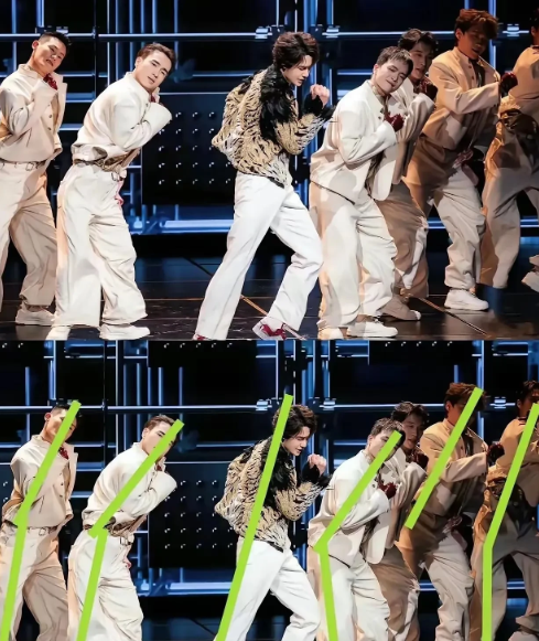 为什么大家都说王一博跳舞好 她说理由很简单,大家看完下面这个图就明白了,同一个舞蹈动作,大家歪七扭八的,只有王一博腰跟腿都伸直了 虽然伴舞也都是训练多年的顶级舞者,但截图后还是明显看出各忙各的,这样更加体现出了王一博的优越性,C位帅哥太耀眼了 其实舞蹈好不好,有时候真的不用听太多专业术语,一张静态图就能说明问题 舞蹈最怕的是什么?动作不到位,线条不干净 很多人动起来气势很足,可一旦定格,胳膊是弯的,腰是塌的,腿是虚的 王一博厉害的地方就在于,他连定格都经得起推敲