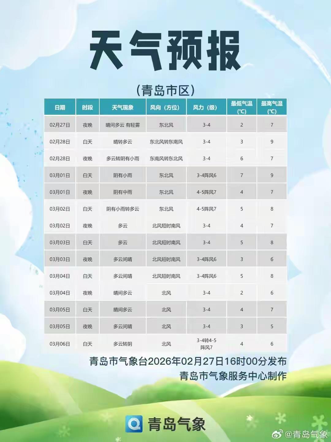 青岛人挺住!超25毫米暴雨+7级大风今夜杀到,持续两天!这些区域最危险,出门千万小心! 雨水已经候场,大风正在路上。这个周末,青岛人熟悉的“湿冷魔法攻击”又要准时打卡了。 据@青岛气象 权威预报,从3月1日凌晨开始,一场持续时间较长的小到中雨将笼罩全城。 这次可不是匆匆过客的阵雨。气象台预计,这场雨会稳稳地下,绵绵不绝,一直持续到2日上午。 全市平均降雨量可达8到15毫米,其中南部沿海地区更甚,将达到10到20毫米。 尤其需要警惕的是,西海岸新区和崂山山区局部地区,降雨量可能超过25毫米!这已经不是简单的春雨,而是需要防范的较强降水了。 雨水带来的不仅是潮湿。紧随其后的,是一股实力不俗的冷空气。从1日下午开始,气温将明显回落,那份初春的暖意会被暂时带走。 更让人头疼的是风力加大,沿海地区东北风可达4到5级,阵风7级。 海上的风浪会更汹涌,近海海域将有6到7级阵风8级的大风。计划出海或进行海上作业的朋友,一定要密切关注天气,安全第一。 也许你会问,这雨到底要下到什么时候? 预计到了下周一上午,雨水才会恋恋不舍地慢慢收工。 但别高兴太早,天空并不会立刻放晴,云层依旧厚重,阳光难以露脸,气温也仍在低位徘徊。 这场雨也有它积极的一面。它将极大地改善土壤墒情,为农田带来宝贵的滋润,同时也有效降低了森林火险的气象等级。 但对于我们普通市民的日常生活,影响却是实实在在的。 持续的降雨和较大的风力,将对海上生产、室外作业和设施农业等带来不利影响。相关部门已经提前发出提醒,请大家务必做好防范。 具体到每一天,我们该如何应对?2月28日白天,天气还算给面子,以晴转多云为主,市区最高气温9℃上下。 但这只是暴风雨前的宁静。到了夜间,天气舞台就开始转换布景,多云转阴,小雨悄然登场。 真正的降雨核心时段是3月1日。这一天,白天阴有小雨,夜间雨势加强为阴有中雨,伴随着呼呼的东北风,体感温度会比实际温度更低。 3月2日,小雨转多云,但大风依旧在,出门防风保暖是关键。值得注意的是,紧接着的元宵节(3月3日)白天是多云天气,夜间云层可能会有部分散开,或许能邂逅一片赏月的晴空。 但元宵夜气温较低,内陆地区最低气温在0℃左右徘徊,市区也在3℃上下。如果想要出门赏灯,一定要把自己裹得严严实实,锁住每一份温暖。 春天孩儿面,一天变三变。未来几天的青岛天气,完美诠释了这句话。雨水和冷空气联手,提醒我们冬天还未真正远去。你的厚外套、雨伞,都准备好了吗? 转发提醒你关心的人,未来几天,出门前一定要看一眼天空,带伞,添衣,防风防雨,一样都不能少。 (来源:综合自半岛都市报、@青岛气象、中国天气网) 青岛暴雨 冷空气来袭