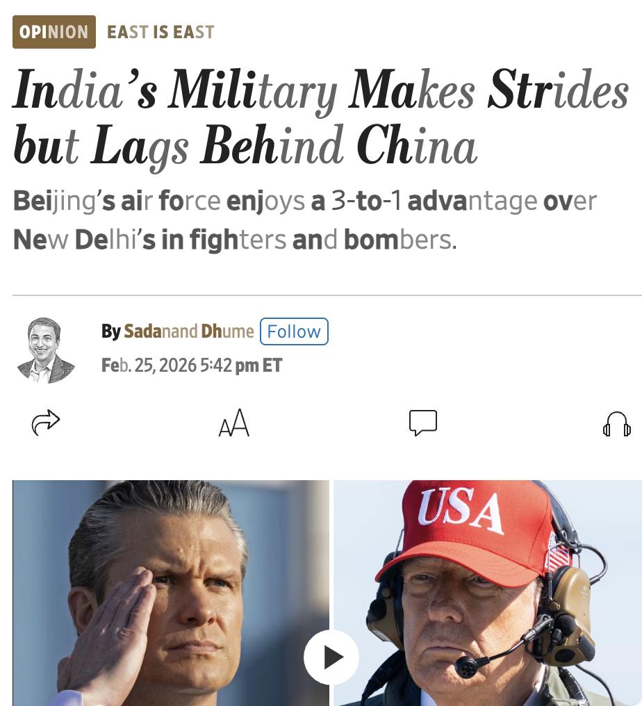 美媒:印度空军正加速现代化,本月宣布将以约360亿美元采购114架法国"阵风"战斗机,创该国史上最大军购纪录,这批战机将增强远程打击能力并成为空军主力。 然而这一耗时二十余年的采购计划也暴露出印度国防建设的悖论:尽管全球军力指数将其列为世界第四军事强国,但面对中国与巴基斯坦的竞争,印度实际上比十年前更加脆弱。 中国空军在战斗机和轰炸机数量上拥有3比1的优势,印度军力增长难以跟上地区安全形势的恶化速度。