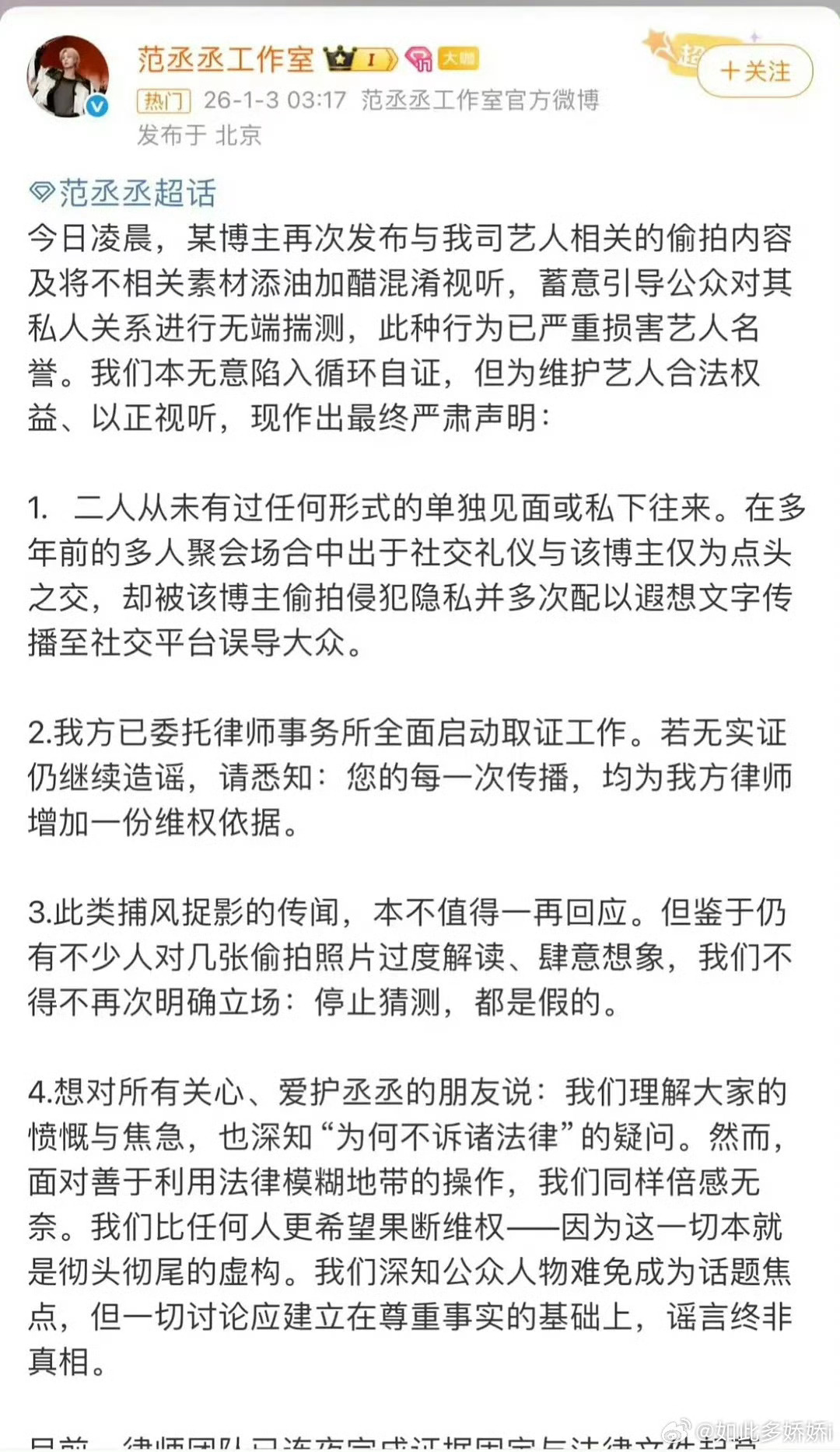 范丞丞开年已经辟谣三次了
