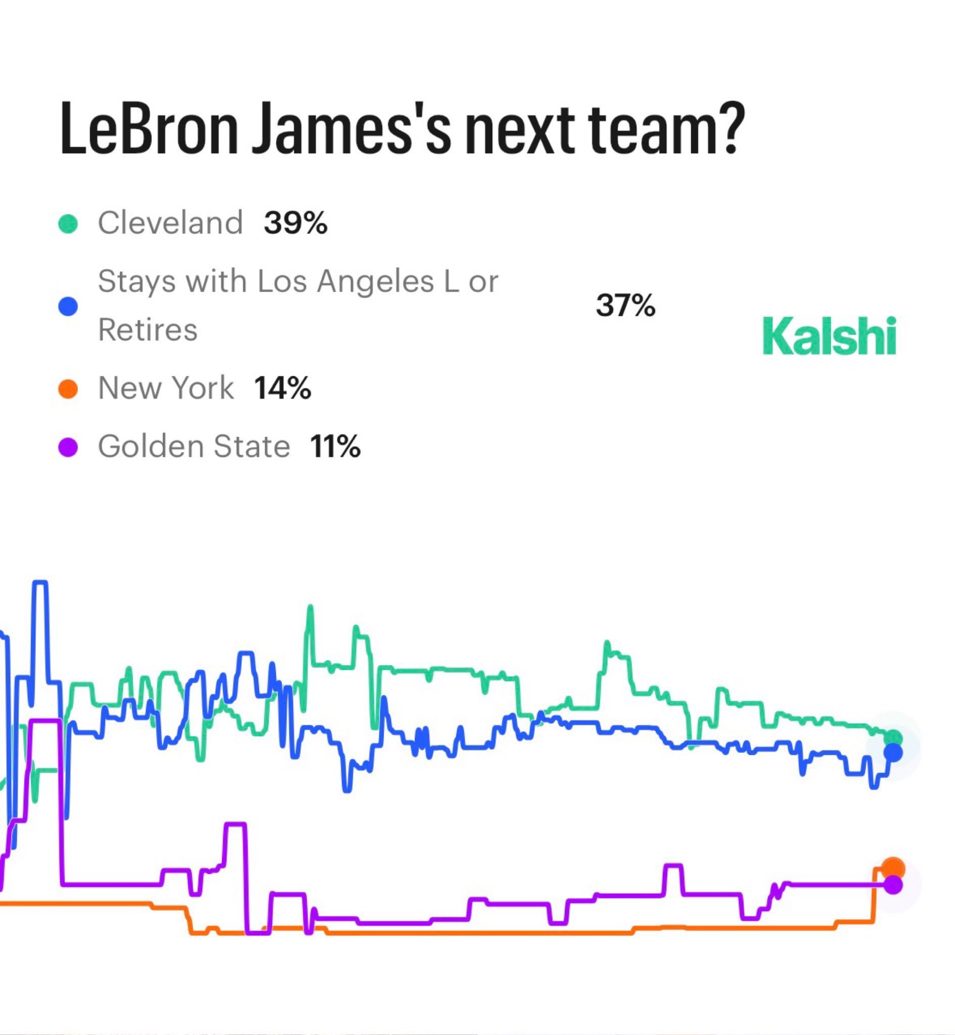 美媒预测勒布朗·詹姆斯下赛季将效力于哪支球队?39%——骑士队37%——湖人队1