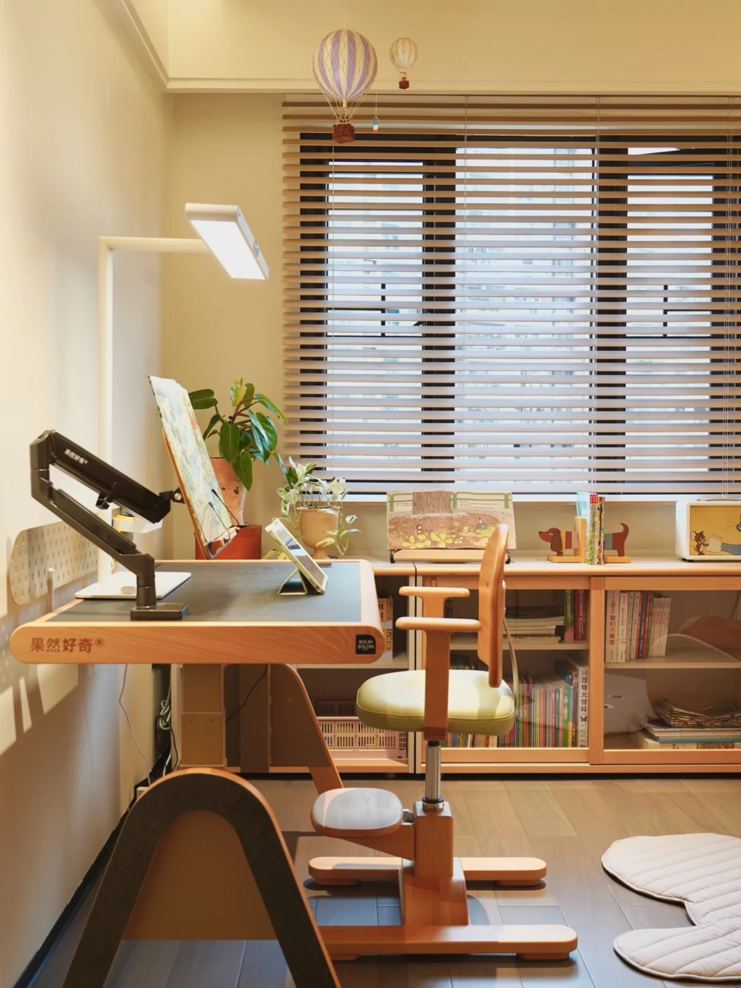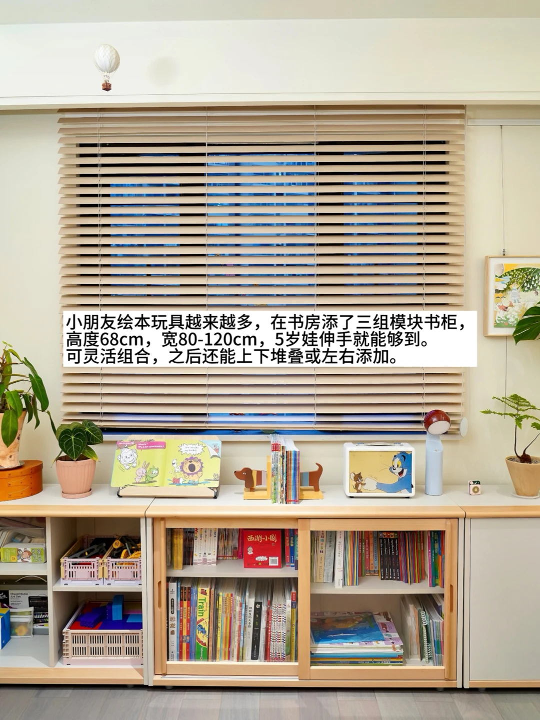 📚模块书柜:随着孩子的绘本、玩具越来越多,给儿童房添了三组模块书柜,高68cm,宽80-120cm,5岁娃伸手就能够到。可灵活组合,之后还能上下堆叠或左右添加。