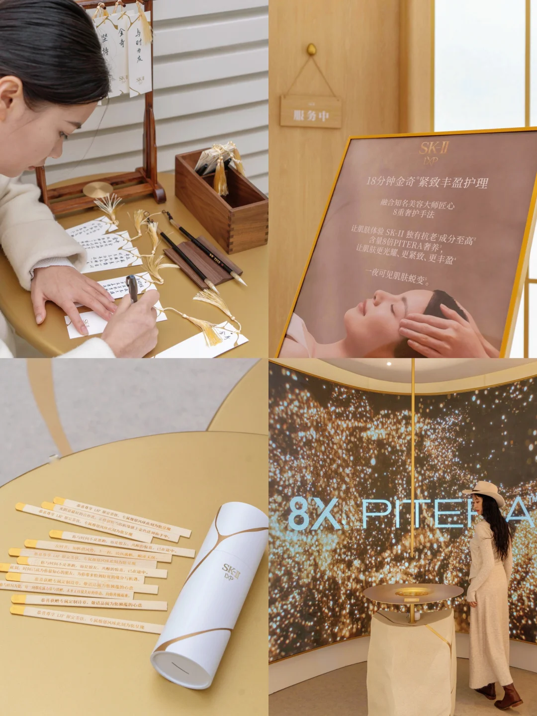2.27-3.5在in77的外面有SK-II「金奇艺境」限时空间,入口处的签筒可求茶也可求诗,抽到「茶」,可以换三款清茗,看茶艺师演绎中式点茶;抽到「诗」,从七词间择一,能得到一句属于自己的诗句,题于书签之上环形陶艺珍品&金奇系列产品墙像是会动的艺术馆,随手定格都是艺术空间大片,耳畔还轻绕ASMR之音!还有朱珠同款金奇系列沉浸式spa,将LXP金奇面霜的奢润融入肌理,肌肤即刻紧致透亮;若能在发布3张美图,还能把金奇面霜体验装带回家,别错过啦!!