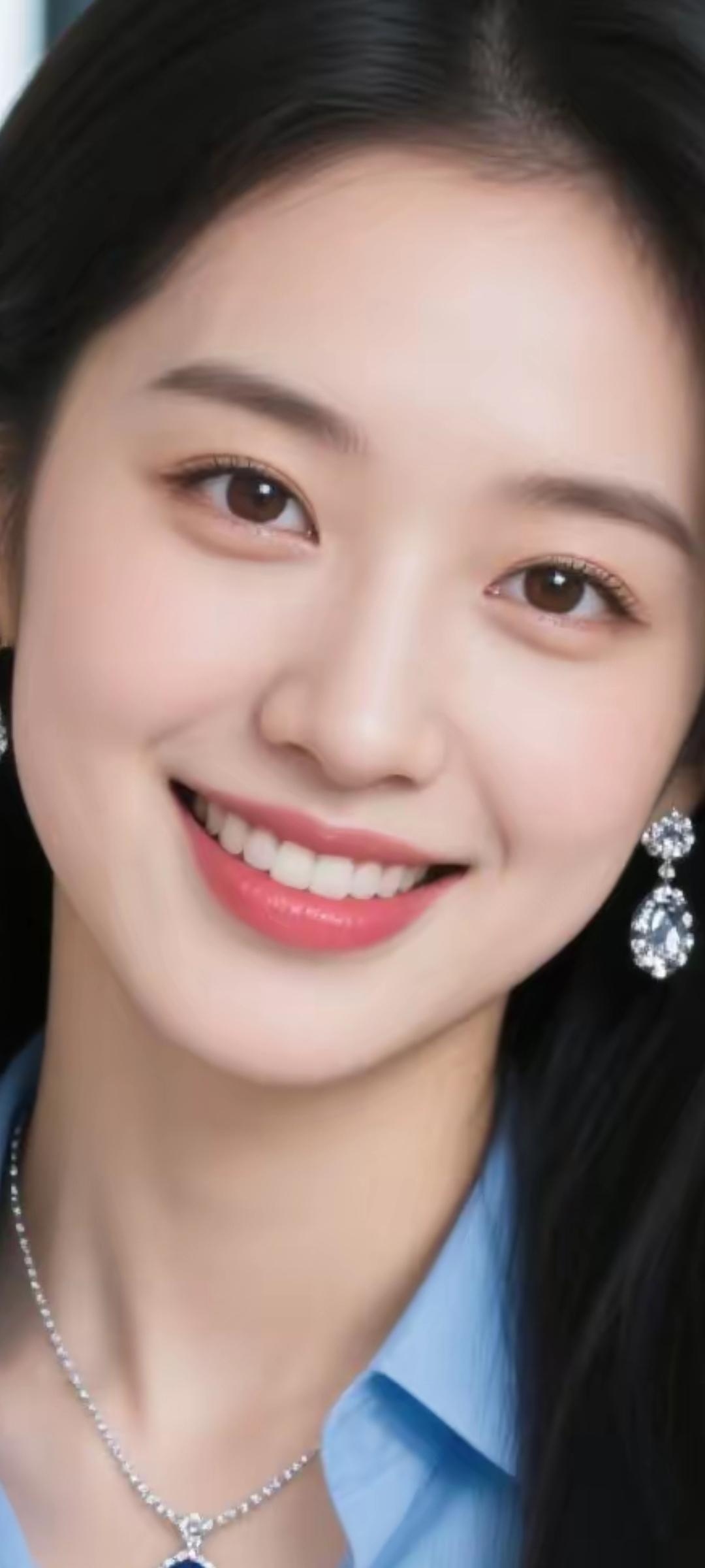 甜美笑容,闪耀耳环,优雅蓝衬衫,元气满满的一天!😊✨