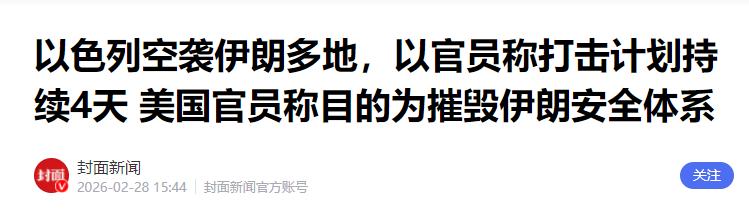 以色列杀疯了!拟团灭伊朗所有高层,要连炸4天不达目的誓不罢休 据央视新闻报道,在德黑兰遭到以色列袭击后,以色列官员表示,以方正在准备一轮为期4天的“联合打击”行动,所谓的“联合打击”,自然是指美国和以色列联合,这意味着伊朗今天遭遇的打击,很可能只是个“开胃菜”。 当地时间2月28日,伊朗首都德黑兰的平静被接连的爆炸声打破,多枚导弹精准命中市中心的军政核心区域,总统府、情报与国家安全部、伊斯兰革命卫队总部等关键设施悉数遇袭,就连伊朗最高领袖办公室附近也未能幸免。 现场浓烟直冲天际,建筑玻璃被冲击波震碎,街头民众陷入慌乱,原本正常运转的首都,瞬间被战争的阴云笼罩。 以色列方面在袭击发生后第一时间官宣,国防部长卡茨公开表示,这是以军针对伊朗发起的先发制人打击,核心目的是消除针对以色列的安全威胁。 与此同时,以色列全境进入紧急状态,防空警报响彻各个城市,国家领空全面关闭,所有商业航班悉数取消,军方要求民众就近前往防空洞避险,全民进入战时戒备状态,足以看出以方对此次行动的决绝。 央视新闻援引以色列安全官员的消息证实,这场军事行动并非以色列单独行动,而是美国与以色列联手发起的联合军事打击。 更值得警惕的是,这并非临时起意的冲动之举,以色列媒体透露,美以双方为此筹划了数月之久,行动日期早在几周前就已确定,选择在白天发动首轮袭击,就是为了彻底打伊朗一个措手不及。 以色列官员对外释放的信号十分强硬,明确此次针对伊朗的军事行动,第一阶段就将持续整整4天,是一场高密度、高强度的连续打击。 此次行动的目标直指伊朗军政高层、国家安全体系、核相关设施以及导弹阵地,以方摆出不达目的誓不罢休的姿态,试图通过这轮持续打击,彻底瓦解伊朗的指挥体系与防御能力。 面对美以的联合突袭,伊朗方面没有丝毫退缩。伊朗内政部迅速发表声明,强烈谴责美以无视国际法的侵略行为,指责对方在外交谈判期间肆意发动军事打击,彻底破坏和平进程。 伊朗随即成立国家危机管理总部,动员全国力量保障民众安全,同时呼吁民众保持冷静,仅通过官方渠道获取信息,杜绝谣言引发社会恐慌。 伊朗多名高级官员更是强硬表态,伊朗的反击不会设置任何红线,所有反击手段都将纳入考量,必将发起毁灭性的报复,绝不会在军事压力下低头。 就在这场突袭发生的前两天,美国与伊朗还在瑞士举行第三轮间接谈判,斡旋方阿曼曾对外透露谈判取得一定进展,外界普遍期待中东紧张局势能迎来缓和。 可美以的突然出手,直接打碎了这份和平希望。以色列安全部门直言,经过24小时评估,认定与伊朗已无谈判可能,这也是发动此次军事打击的直接理由。 这场冲突的骤然升级,瞬间让整个中东地区绷紧了神经。黎巴嫩真主党、也门胡塞武装等伊朗的地区盟友,纷纷宣布进入战备状态,明确将配合伊朗展开反击行动。 沙特、阿联酋等海湾国家,明确拒绝美军使用本国领土、领空及基地参与此次打击,埃及、土耳其等地区大国也接连发声谴责,要求美以立即停止军事冒险,避免地区陷入全面战火。 国际社会也对此次冲突高度关注,联合国计划召开安理会紧急会议,专门讨论中东局势升级问题。联合国官员多次呼吁各方保持最大克制,立即停止军事行动,重回外交谈判轨道,避免冲突进一步外溢。 国际原子能机构也发出紧急警告,针对伊朗核设施的军事打击,存在极大的核安全风险,一旦出现意外,将对地区乃至全球安全造成难以估量的后果。 这场为期4天的联合打击,看似是美以掌握着战场主动权,却也把整个中东推向了全面战争的悬崖边缘。 伊朗拥有完整的导弹体系和区域军事部署,一旦发起全面反击,战火必然会波及周边多国,中东石油运输通道将受冲击,全球能源、金融市场都会随之剧烈震荡,没有任何一方能在这场大规模冲突中独善其身。 截至目前,美以的联合打击仍在持续,伊朗的报复性反击也随时可能落地,未来4天无疑是决定中东局势走向的关键窗口。 这场冲突早已超越两国恩怨,成为牵动全球安全格局的重大事件,和平的曙光变得愈发渺茫,军事对抗的阴霾笼罩着整个中东。