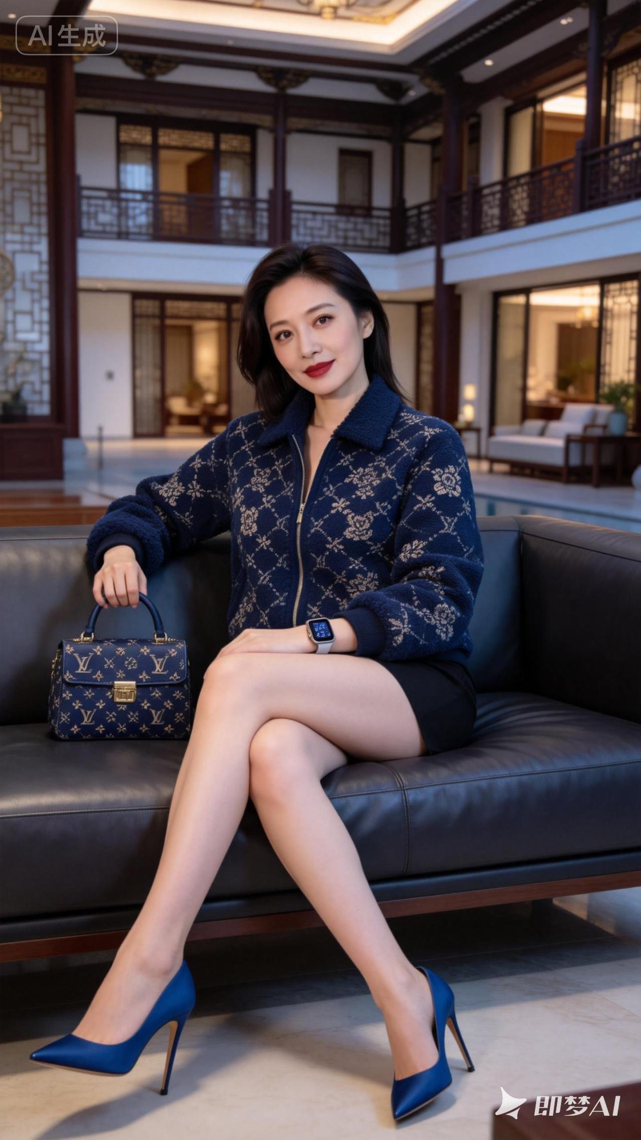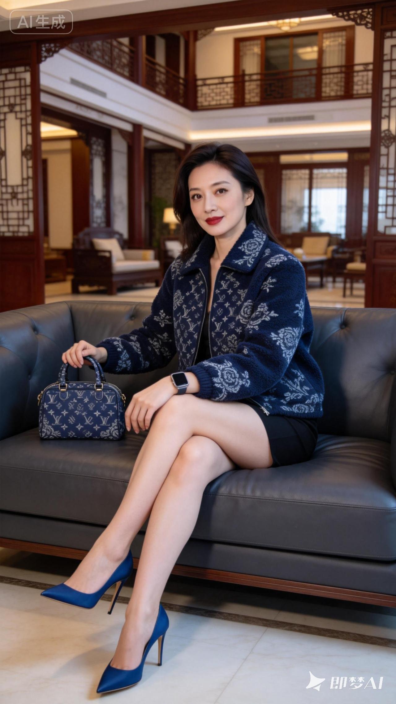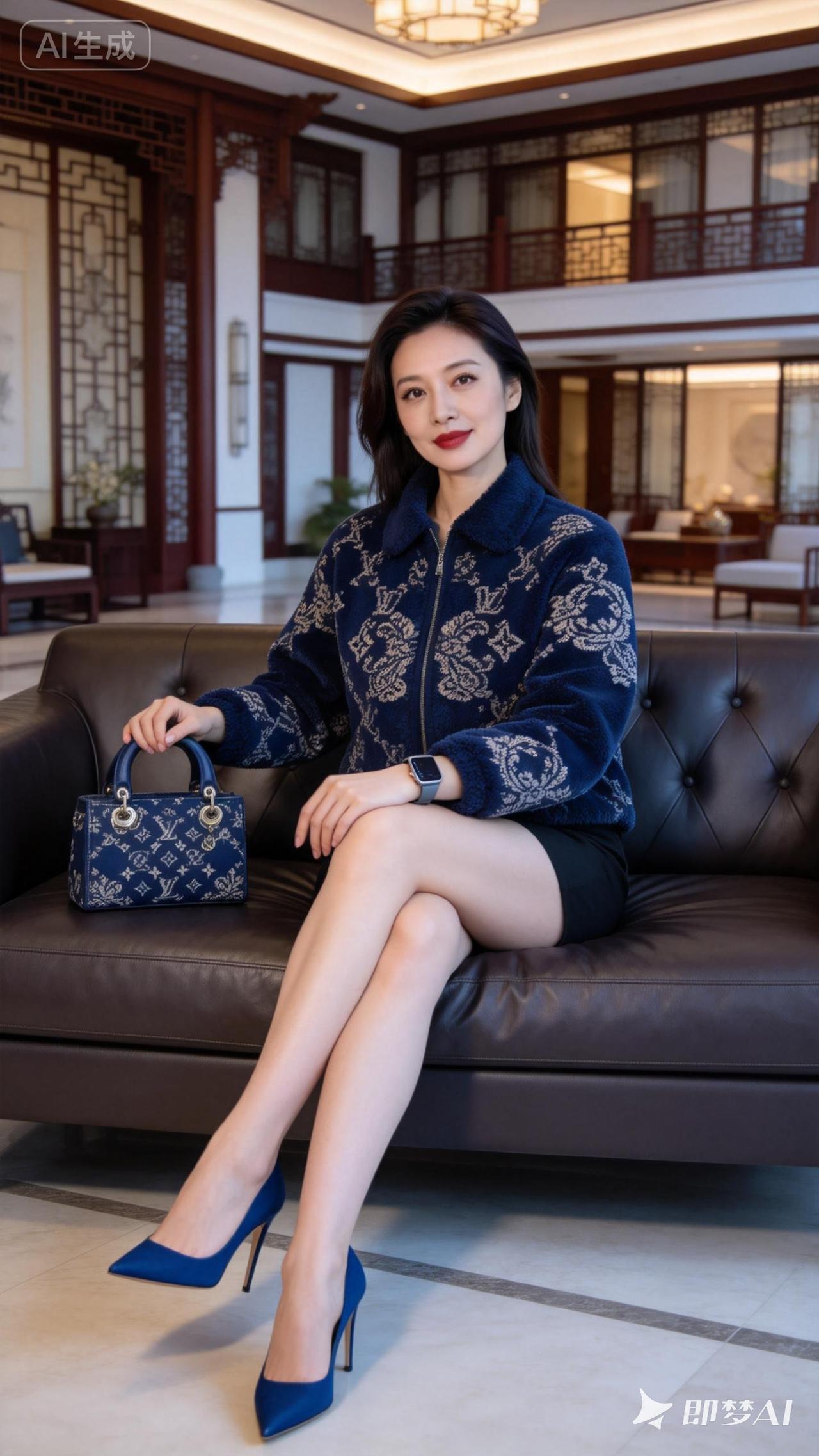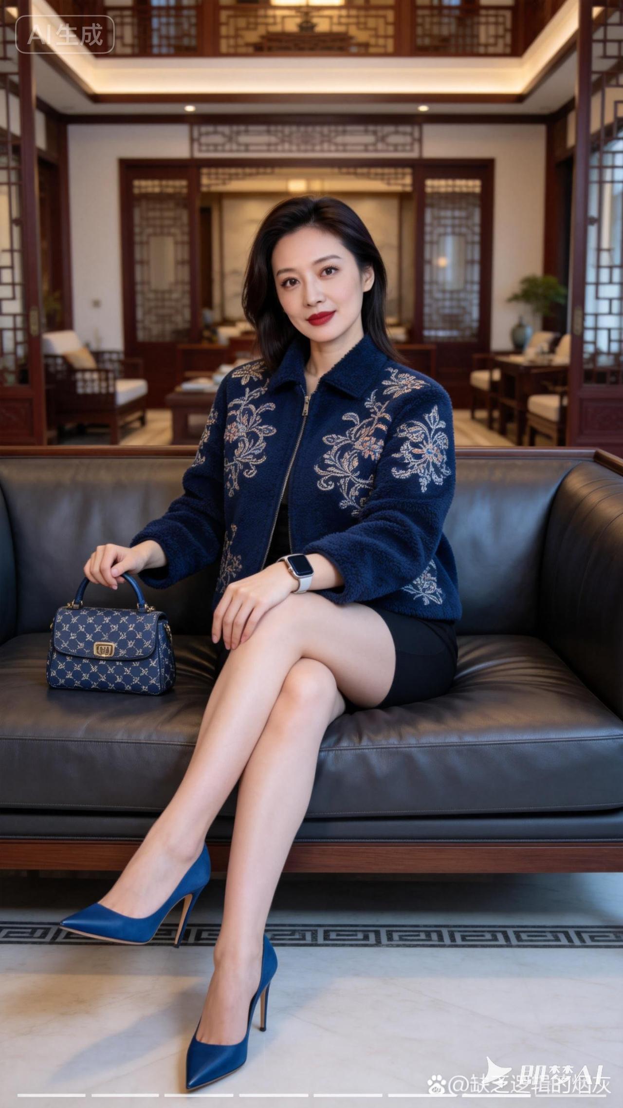 优雅穿搭指南:蓝白撞色毛衣搭配黑色短裙,尽显时尚魅力!