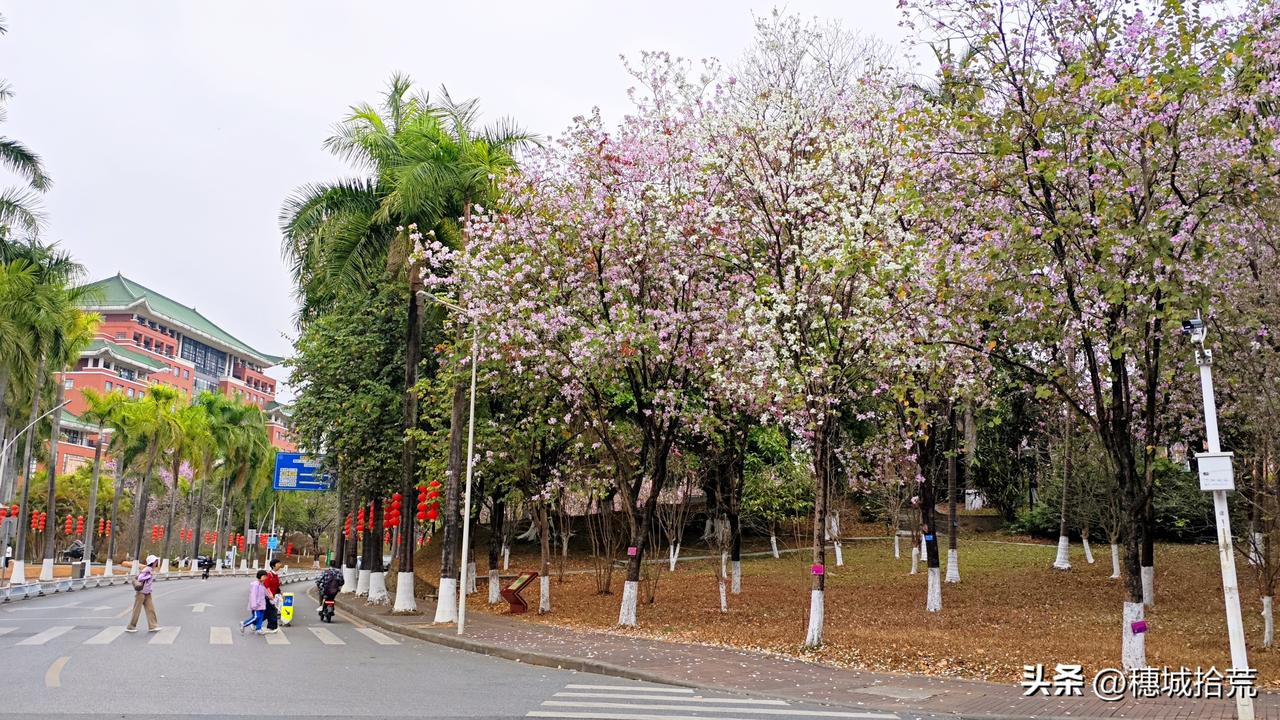 都说今年过年晚,广州的花期从来都不晚。华南农业大学,本周正式迎来花期最盛时刻!百年学府里的春日盛宴,已经悄悄拉开帷幕了! 成片的紫荆花林,粉白相间的花朵缀满枝头,远远望去如云似霞,红楼绿瓦相映成趣。 除了紫荆花,目前华农竹园湖边的红杜鹃、黄花风铃也达到最盛、动物学院那片广州红缨灿烂热烈、宁荫湖边停车场的黄花风铃再不看就要凋谢了...... 赏花Tips给大家几条: 1、最快赏花路线,广州地铁3号线五山A口,步行即达。借一部电单车是最省力的。 2、不用门票,提前在学校公众号预约入校 3、最盛花期在本周,错过浪漫再等一年 由于本人拍照技术有限,比我拍的好的,评论里分享一下。广州最值得去的公园有哪些紫荆花 黄花风铃木 广州
