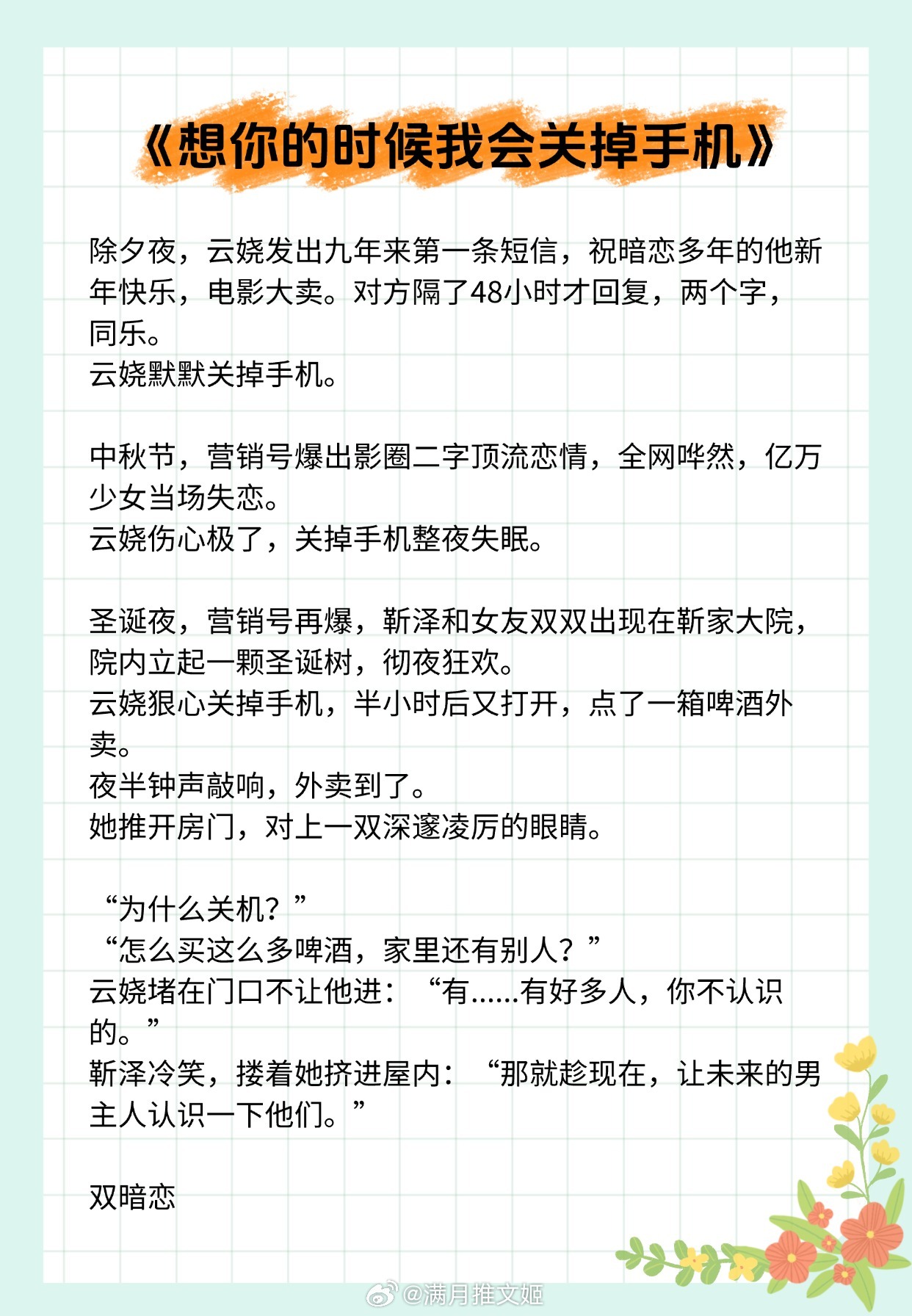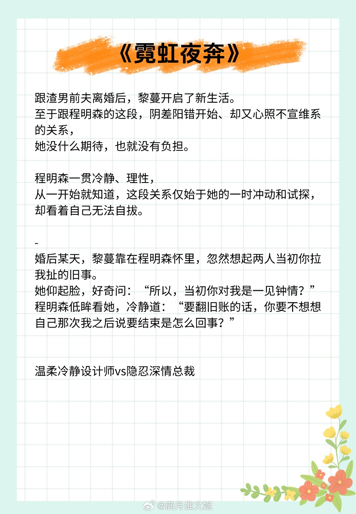 《霓虹夜奔》作者:周许《想你的时候我会关掉手机》作者:云水迷踪《月半弯》作者:周板娘《看你时自带滤镜》作者:孟中得意《半封离别信》作者:任平生《暗燃》作者: 时玖远推文推文言情小说推荐