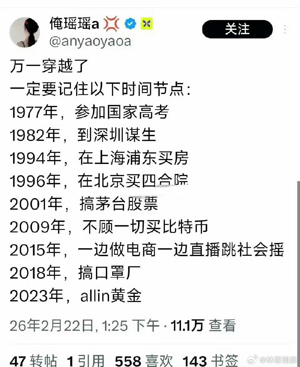假如能穿越回去,你会选哪一年做什么?