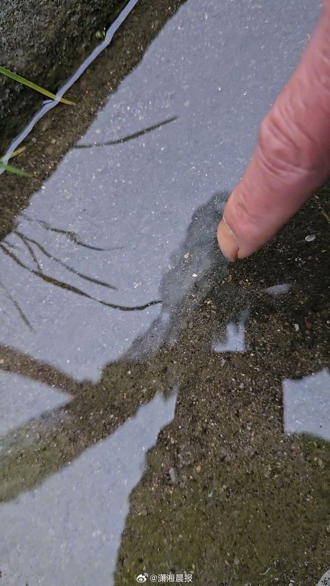 潇湘晨报·晨视频记者来到刘先生姑妈家,她自家庭院里养着约20只鸭子,院子里有一个摇井,连接地下水,“有时候会用摇井出来的地下水喂鸭,流出的水会通过地面上的水沟流向鸭子喂养处。”