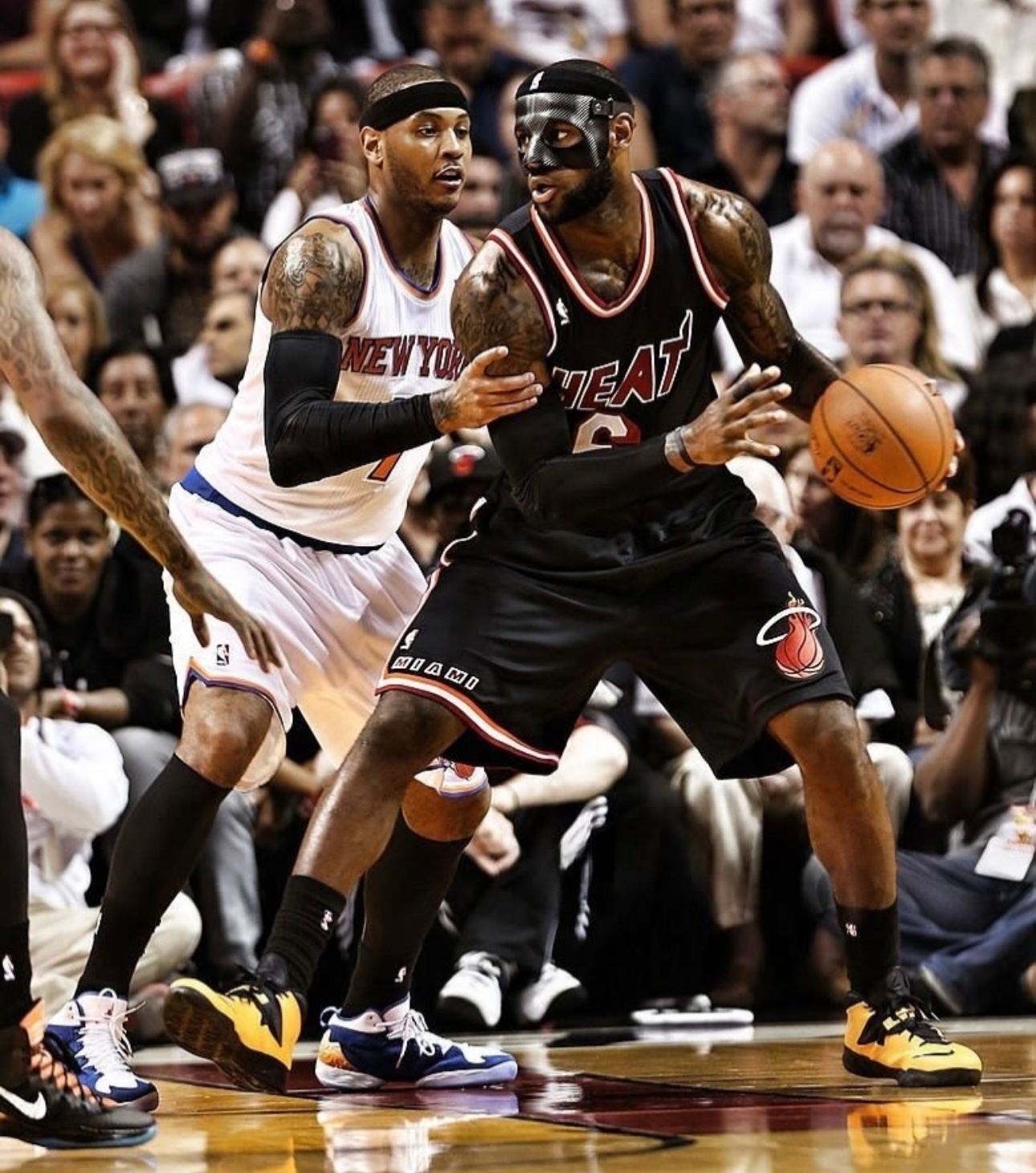 篮天下 2014年的面具詹vs纽约尼克斯,19投13中,砍下31分4篮板4助攻!