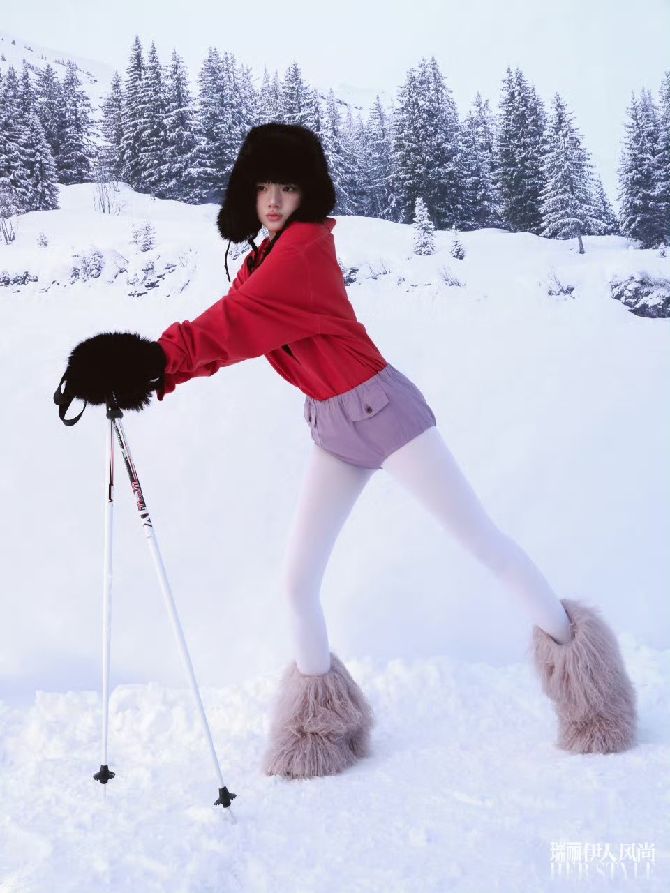 女明星为了出片也是拼了,这个任敏是真不怕冷。