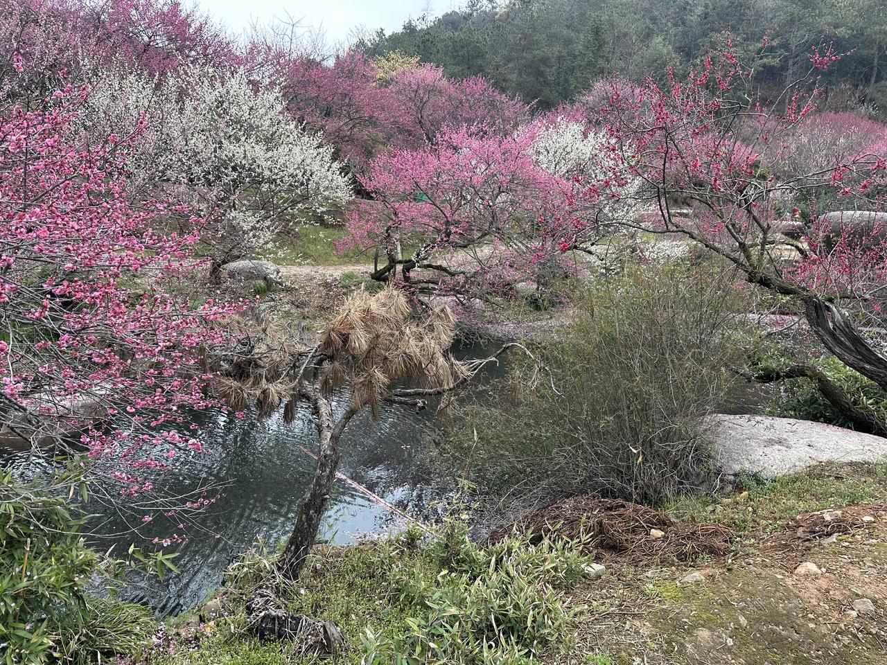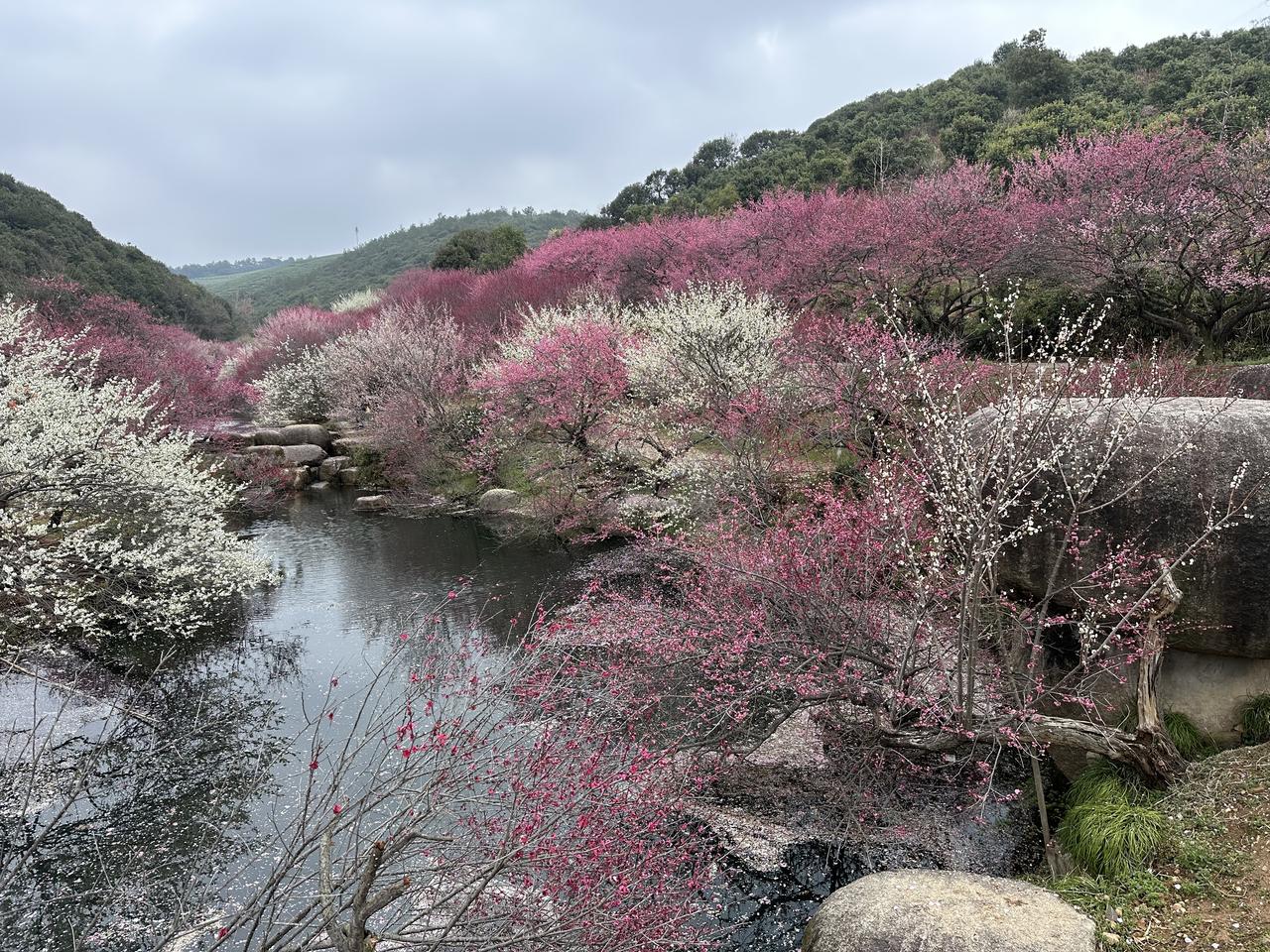 大美中国走进东方梅园! 正是一年好风景,花开时节愿逢君! 江南寻芳,万株红梅开成香雪海 不用远赴他乡,江南水乡的东方梅园,正把春天写成诗! 300余亩梅林、2万余株梅树、60+珍稀品种,朱砂梅热烈、绿萼梅清雅、垂枝梅飘逸,一入园区便暗香浮动、粉云漫山。梅香湖、梅花池水波映花,花瓣逐水而流,随手拍都是“梅影横斜水清浅”的国风大片;古梅盆景园里百年梅桩苍劲雅致,搭配太湖石与亭台,一步一景皆是东方美学。 这里还是热播剧取景地,这里既有十里梅廊的壮阔,又有水畔疏影的温柔。2月下旬—3月中旬正值盛花期,春风拂过,落英缤纷,漫步林间,把一整个早春的浪漫都拥入怀中。 赏梅、拍汉服、逛古森林博物馆,再尝一口农家风味,这才是春天该有的样子✨ 东方梅园 春日赏梅 江南春日限定