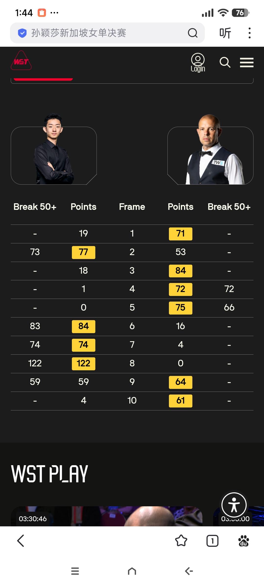 吴宜泽无缘决赛! 杰克·利索夫斯基进决赛获得额外15万英镑! 3月1日,斯诺克威尔士公开赛半决赛结束。吴宜泽4-6不敌巴里·霍金斯,前五局,吴宜泽1-4落后,随后打出一杆破百两杆50+连扳三局,比分4-4战平!巴里·霍金斯连赢两局,6-4淘汰吴宜泽,晋级决赛。 杰克·利索夫斯基打出单杆138分和四杆50+,6-5绝杀约翰·希金斯,晋级决赛。 进入决赛,利索夫斯基英国本土四赛积分超过马克·艾伦,他得到了15万英镑第额外大奖。 决赛赛程: 今晚21点第一阶段;明日凌晨3点第二阶段,17局9胜赛制。冠亚军奖金10万和4.5万英镑。