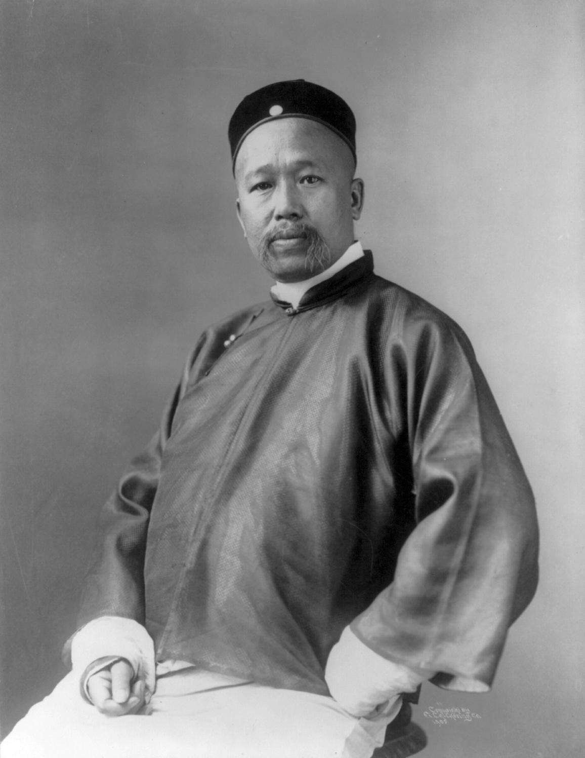 这张照片拍摄于1905年,是康有为47岁时的正式肖像照,他坐姿端正,神情严肃沉稳