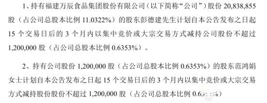 但在业绩披露的前一日,万辰集团还发布了一份股东的减持计划。万辰集团控股股东、实际控制人的一致行动人彭德建及其妻子范鸿娟,因“缴纳税款、偿还贷款及股东自身其他资金需求”,拟分别通过集中竞价或大宗交易方式减持公司股份不超过120.0万股。若按公告披露当日万辰集团217.55元/股的收盘价计算,彭德建夫妇二人此次可套现约5亿元。