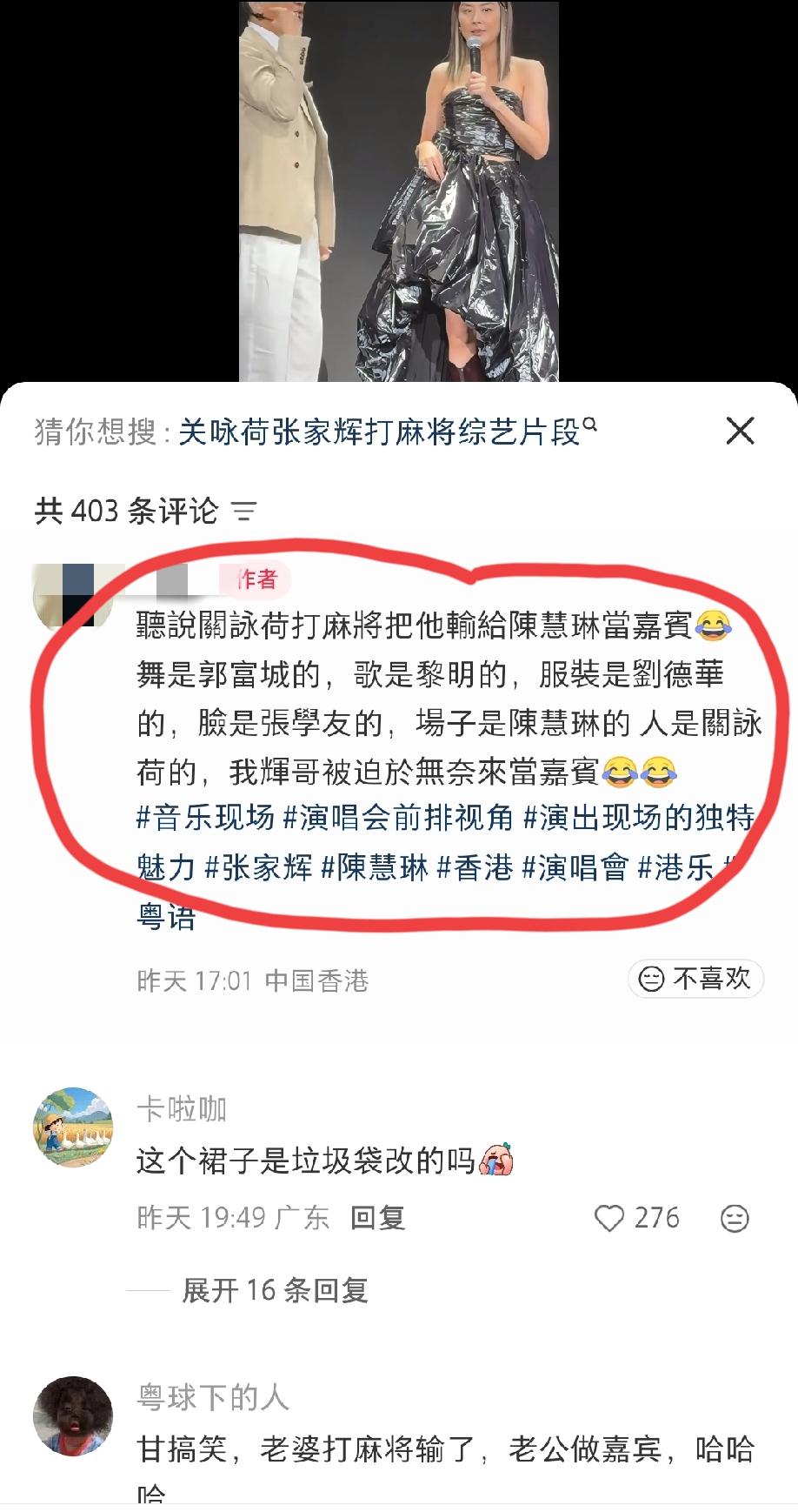 香港网友透露“张家辉给陈慧琳演唱会当嘉宾”的背后真相:据说是关咏荷打麻将,拿张家辉作赌注,把他输给了陈慧琳做演唱会嘉宾的。 这个事情的真实性到底有多少?估计也只有她们几位当事人才知道了。 不得不说,香港这些老牌艺人之间的关系还是非常好的,不像现在的内娱,尽是些拉踩、互黑的戏码。就比如当年的“无线五虎将”,虽然内部竞争很激烈,但好像从来没有谁吐槽谁的传言流出来,相互之间的竞争都是良性竞争。