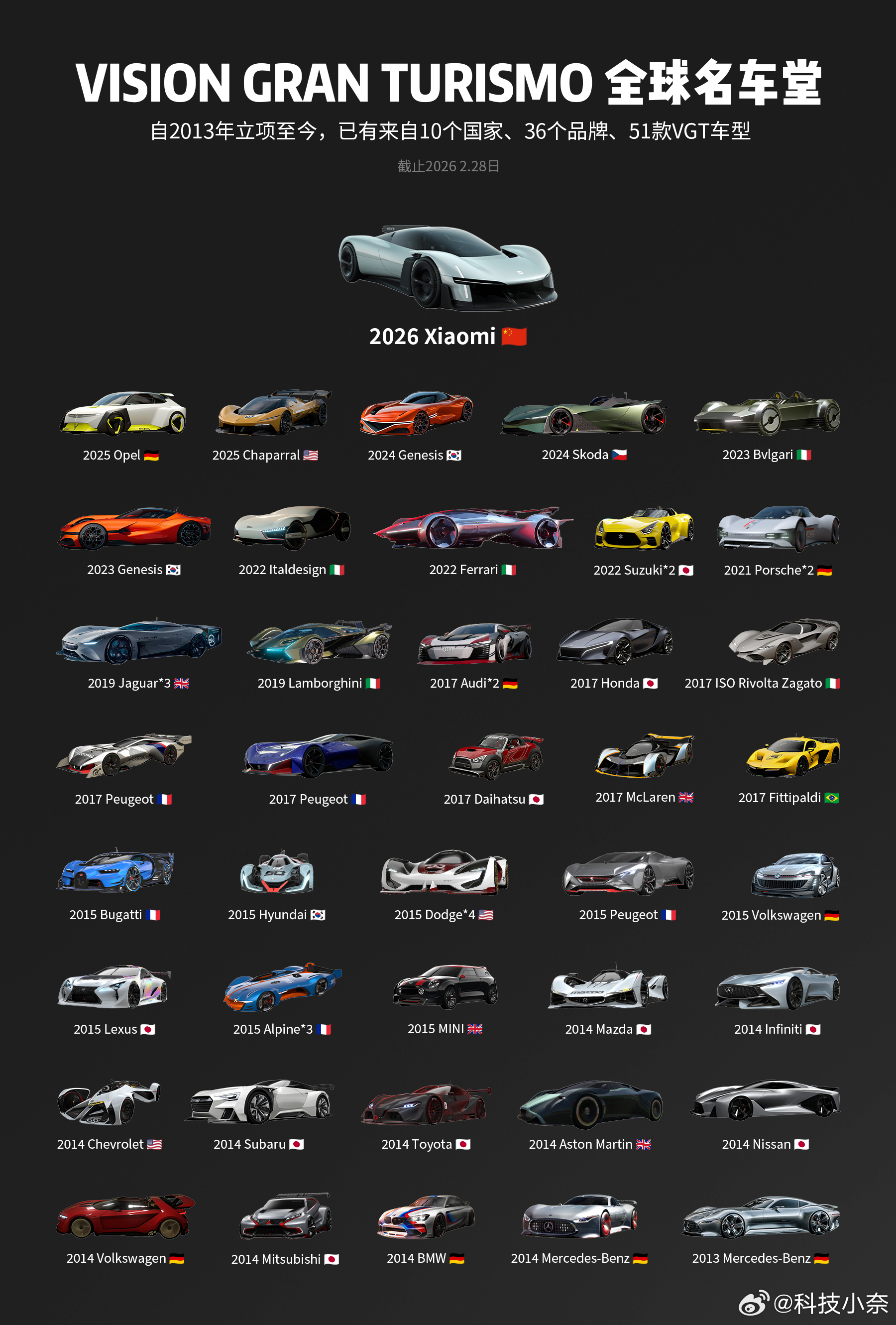 而小米!即是是首个中国品牌,也是第36个加入项目的品牌,更是第51台Vision Gran Turismo概念车!这已经不光是小米的牌面这么简单,更是中国汽车设计的里程碑时刻!