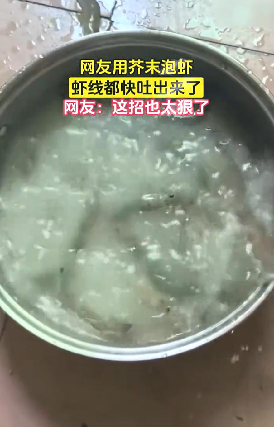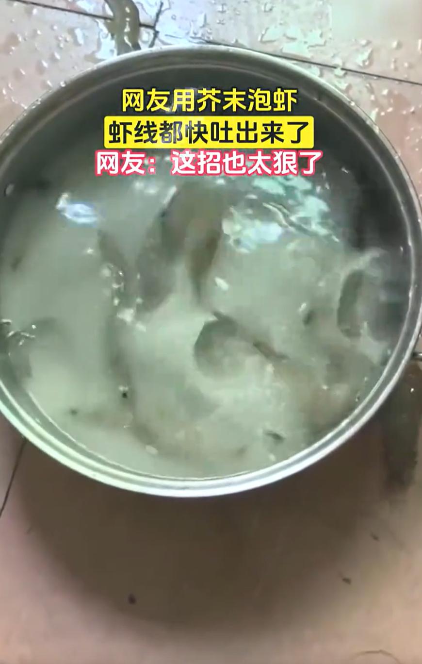 “太狠了!”女子买了一盆虾,看到网上说可以用芥末泡虾吐泥,就直接挤了半罐下去,几秒后盆里的虾直接沸腾,别说是吐泥,就连虾线都快吐出来了。网友:这招也太狠了! 当天,大姐从市场拎回来一盆活蹦乱跳的虾,想着晚上给家人做顿好吃的。洗虾的时候突然想起网上有人说,用芥末泡虾能让虾把肚子里的泥吐干净。她心想这办法听着挺新鲜,正好家里有芥末,就试试呗。结果这一试,可把她给整懵了 大姐挤了小半管芥末进盆里,用手搅了搅,想让芥末化开。谁能想到,刚才还挺安静的虾,一下子就炸了锅。那些虾在盆里疯狂扑腾,有的甚至直接往外跳,溅得到处都是水 这场面,跟往盆里倒了开水似的,虾恨不得一秒都不想在盆里待着 后来她把这段经历发到网上,可把网友们乐坏了。有人开玩笑说,平时吃的醉虾是喝酒醉的,那这个该叫什么?叫冲虾?还是叫哭虾? 还有人在问,难道虾也怕芥末? 这个疑问倒是挺有意思的,咱们吃芥末都受不了那股冲劲儿,虾在水里被芥末一呛,反应激烈点好像也不奇怪 其实仔细想想,这事背后有个挺实在的道理。咱们平时处理虾,确实想让虾干净点,但芥末这招属实有点狠了 虾是通过鳃呼吸的,水里一旦有了刺激性物质,虾的鳃受到刺激,就像人被呛到一样,肯定要挣扎着逃跑。那一瞬间的剧烈反应,肚子里的东西确实会被挤出来一部分,但这个过程对虾来说,绝对不是什么愉快的体验 说到底,想让虾吐泥,有个更简单实在的办法。把虾放在清水里,稍微加点盐,让它待上一两个小时,虾自己就会慢慢把脏东西排出来。虽然效果没那么立竿见影,但至少虾不用遭那么大罪,肉质也不会因为过度刺激而变差