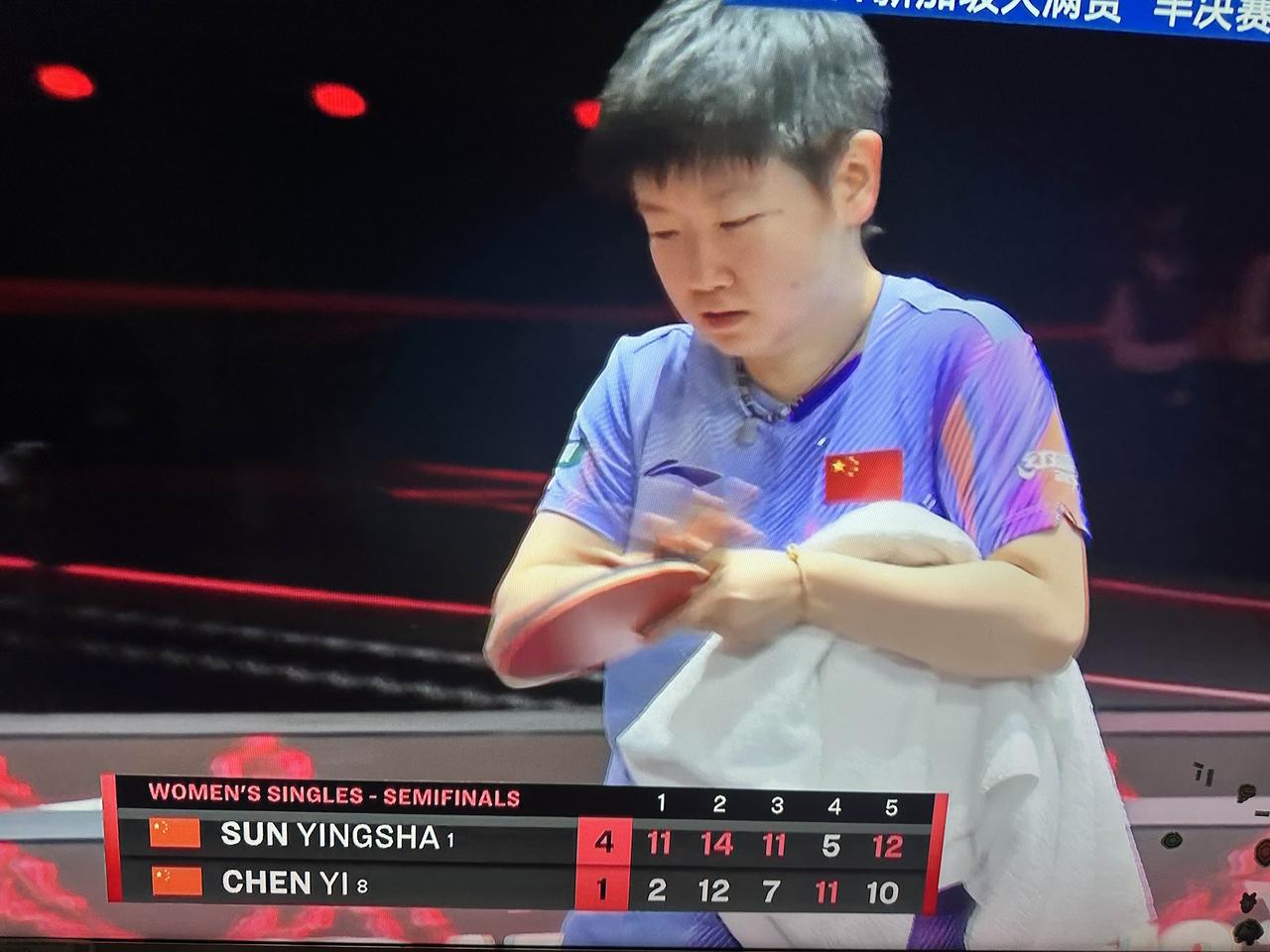 恭喜莎莎晋级决赛! 毫无悬念,莎莎赢了陈熠,大比分4-1。看过莎莎打了这么多内战,几乎没看到过她把队友零封。就如大魔王曾经说过的那样:孙颖莎打内战,手太软。 站在乒乓球的巅峰,不仅外协研究她,内部也在研究,每个人都想赢她,莎莎太不容易了。 很多时候,我都在想,如果她退役了,看看乒乓球的繁华盛世还能维持多久?黑子看到肯定会说:“除了他们,地球照转,乒乓球照打……”可是我想说,群众的眼睛都是雪亮的,这样的乒乓盛世后有没有来者我不知道,至少是前无古人,看看观众席位就知道。 期待莎莎今晚和鳗鱼的精彩对决,我站莎莎。孙颖莎