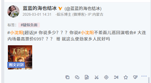 小沈阳整顿演唱会票价来了小沈阳演唱会内场价格 小沈阳完全就是整顿演唱会票价来了这也太有性价比了吧… 内场最高价也才699 除此之外还有很多好歌!《依兰爱情故事》《你懂的》《都要好好的》《我的好兄弟》……每一首都是刻在心底的经典旋律。用诚意舞台回馈一路相伴,现场气氛热烈拉满,欢笑与温暖一路相随。全国巡演即将开启,这一场,一定要赴约!