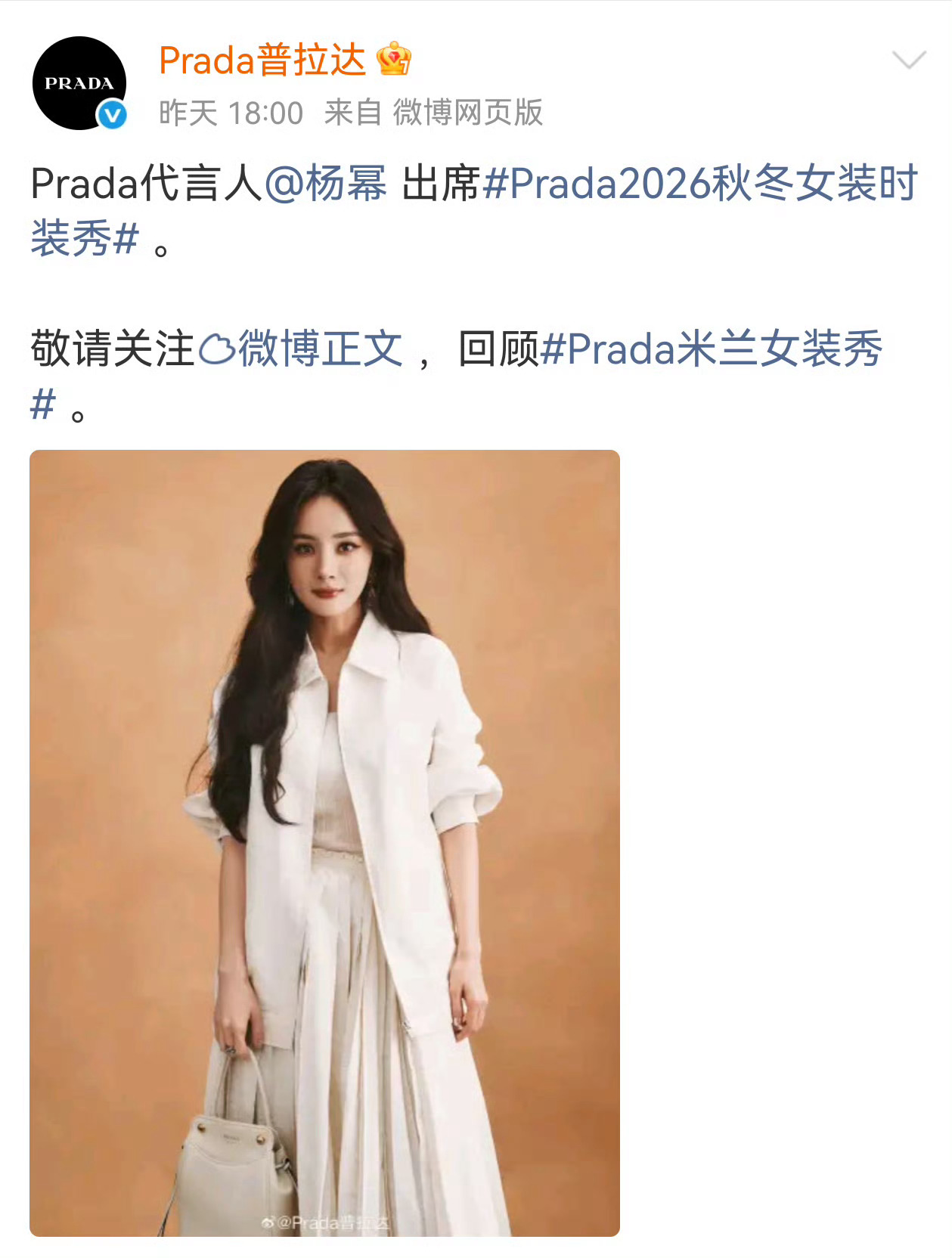 杨幂Prada顶级待遇prada第一批官号认领来了按认领顺序排列