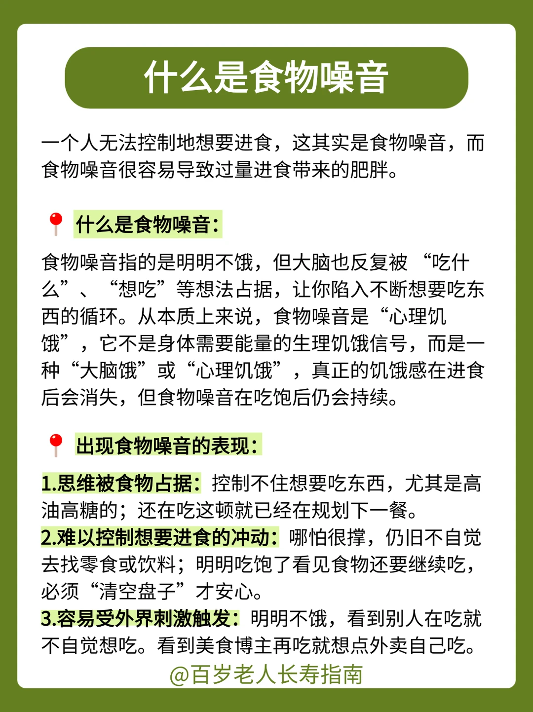 [红色心形R]食物噪音是一种难以抑制的脑中关于食物的想法,就是你哪怕不饿,也想要吃东西,明明在工作,脑子里仍旧闪现吃东西的念头,甚至看到别人吃,你不自觉自己也想吃。
