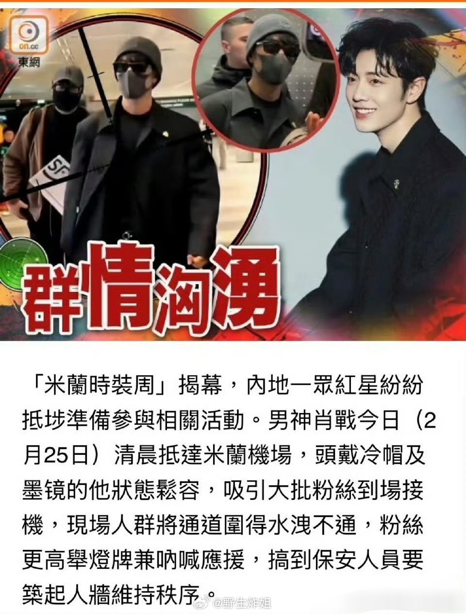 港媒那边的报道写到肖战去参加米兰时装周,直接用到了享顶级待遇,这真的是顶流的国外