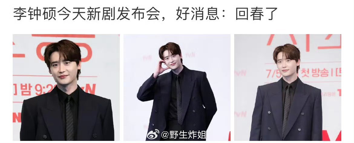 突然发现每次李钟硕出来参加活动都会被问到颜值什么时候才能回春,一直都在颜值回春的路上啊