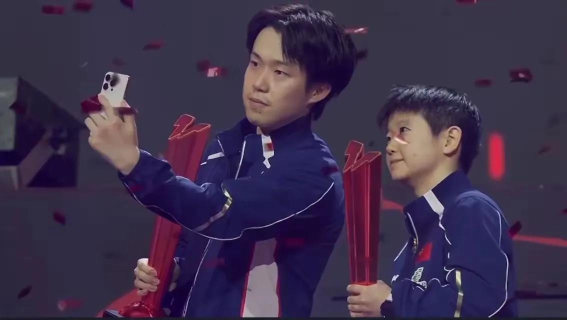 等了这么久,终于等到这梦幻一幕!莎头两小只,又一次在新加坡赛场双双登顶。 其实早就猜到这个结果,优秀的人从来都是并肩前行,同步成长、同步变强,这默契根本藏不住。也难怪大家都说他们是天选混双,世界第一的左手搭配世界第一的右手,这样的顶配搭档,放眼乒坛谁不羡慕。 赛场上互相成就,领奖台一起闪耀,他们用实力把“顶峰相见”变成了常态。能一路陪着他们见证这么多荣耀时刻,作为粉丝真的打心底里骄傲。