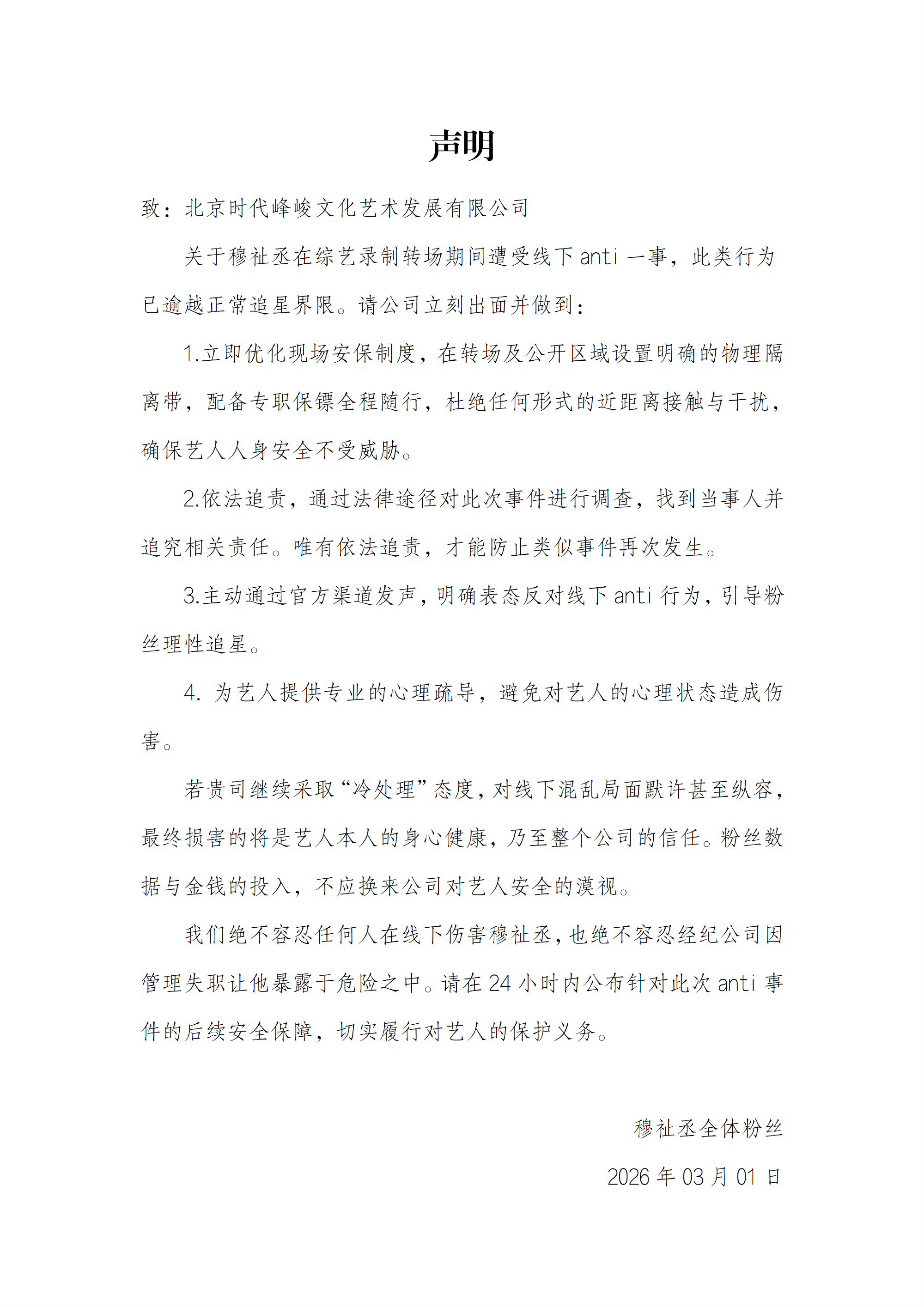 穆祉丞数据组针对线下anti发布追责声明🈶