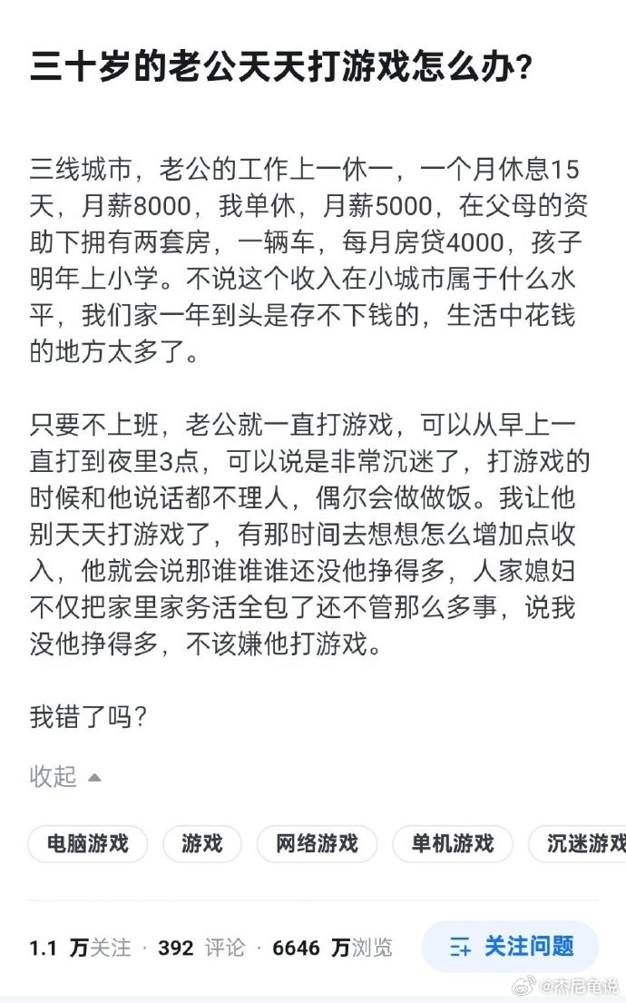 “30岁老公天天打游戏怎么办?”