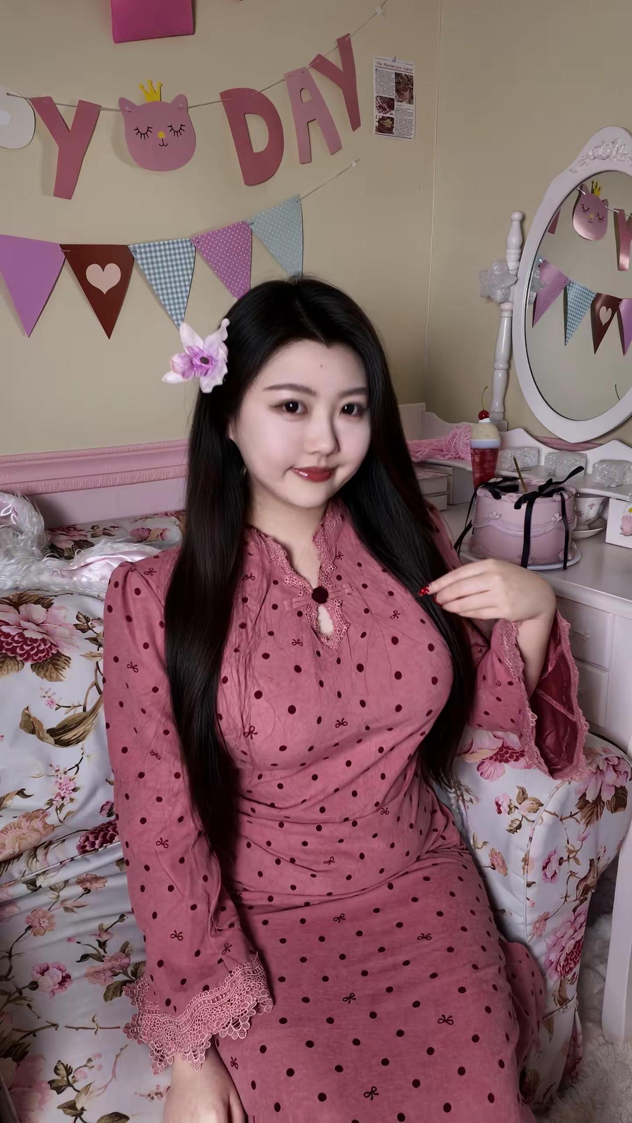 总想要透过你眼睛 去找寻。春日穿搭 肉肉女生 旗袍 可爱旗袍