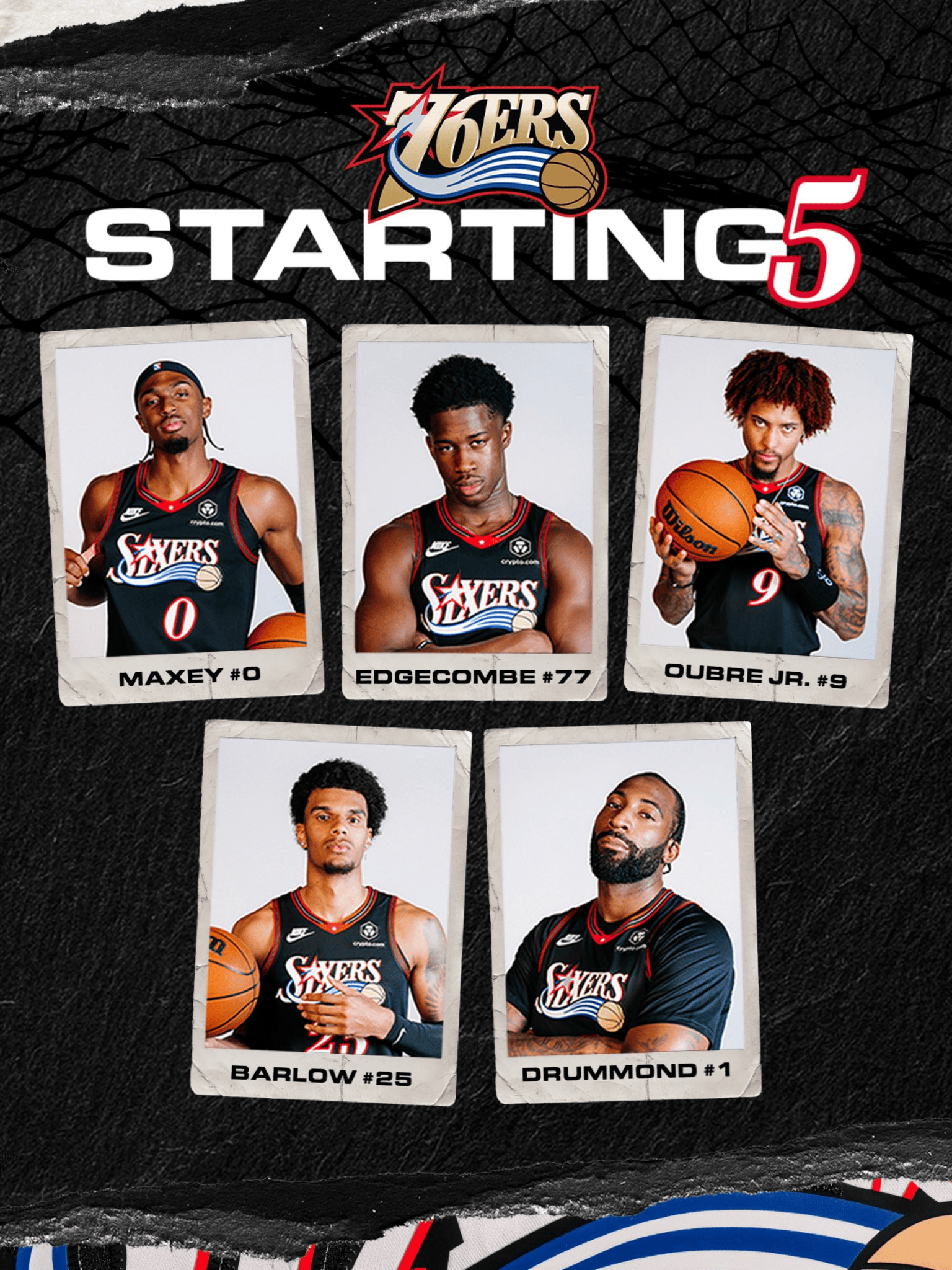 76人首发:泰雷斯-马克西、VJ-埃奇库姆、凯利-乌布雷、多米尼克-巴洛、安德烈-德拉蒙德。