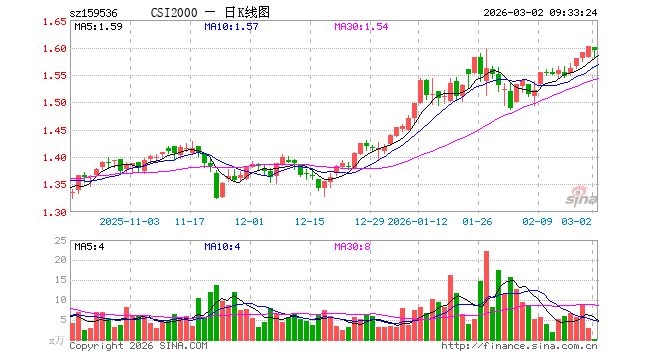 3月2日,中证2000ETF汇添富(159536)开盘跌0.12%,报1.599元。中证2000ETF汇添富(159536)重仓股方面,有研粉材开盘跌1.15%,炬光科技跌3.44%,昂立教育跌1.65%,华西股份跌1.31%,威星智能跌1.00%,纵横通信跌1.74%,黔源电力跌0.94%,智莱科技跌1.91%,光庭信息跌2.72%,美芯晟跌2.35%。