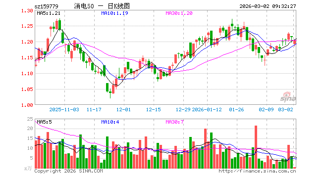 3月2日,消费电子50ETF(159779)开盘跌1.89%,报1.191元。消费电子50ETF(159779)重仓股方面,立讯精密开盘跌1.81%,寒武纪跌2.38%,工业富联跌3.05%,中芯国际跌1.84%,京东方A跌0.89%,兆易创新跌3.04%,澜起科技跌2.76%,东山精密跌1.81%,豪威集团跌2.13%,生益科技跌3.02%。