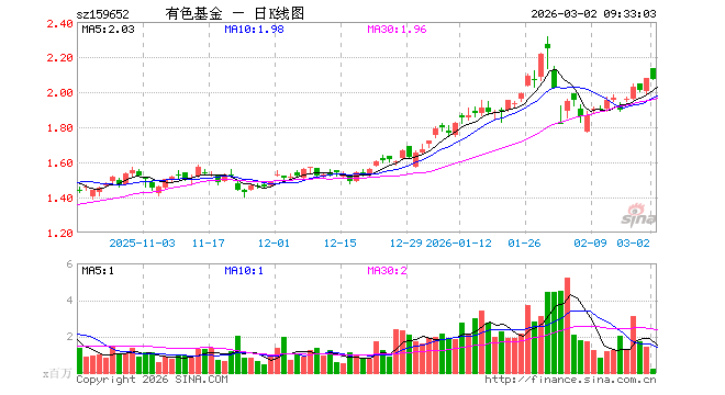 3月2日,有色ETF汇添富(159652)开盘涨2.64%,报2.136元。有色ETF汇添富(159652)重仓股方面,紫金矿业开盘涨2.15%,洛阳钼业涨1.71%,北方稀土涨1.86%,华友钴业跌0.01%,中国铝业涨1.17%,赣锋锂业跌0.51%,山东黄金涨3.57%,云铝股份涨1.60%,中金黄金涨6.16%,天齐锂业跌1.08%。