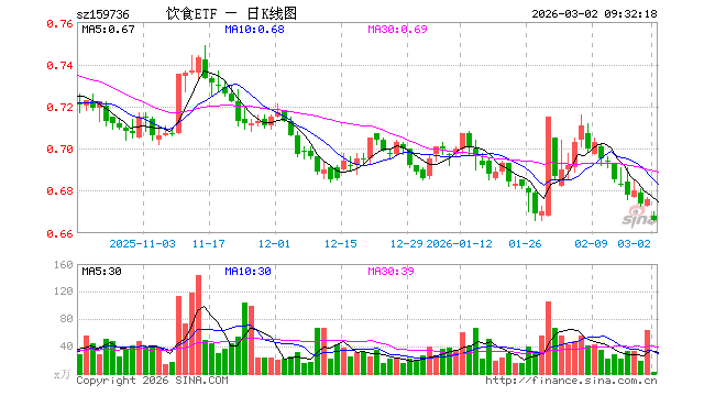 3月2日,食品饮料ETF天弘(159736)开盘跌1.18%,报0.668元。食品饮料ETF天弘(159736)重仓股方面,伊利股份开盘跌0.50%,贵州茅台跌0.35%,五粮液跌1.01%,泸州老窖跌1.38%,山西汾酒跌0.70%,海天味业跌0.89%,东鹏饮料跌1.06%,洋河股份跌0.94%,双汇发展跌0.38%,安琪酵母跌0.34%。
