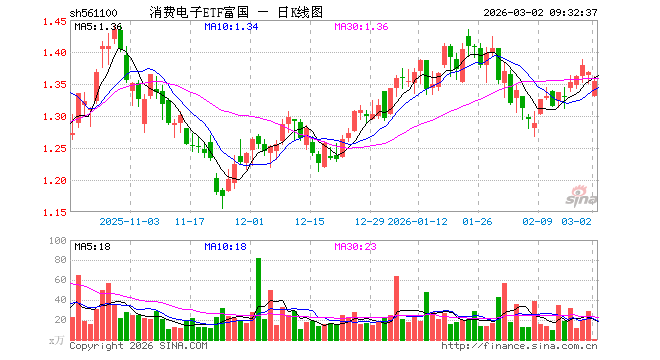 3月2日,消费电子ETF富国(561100)开盘跌2.70%,报1.331元。消费电子ETF富国(561100)重仓股方面,立讯精密开盘跌1.81%,寒武纪跌2.38%,工业富联跌3.05%,中芯国际跌1.84%,京东方A跌0.89%,兆易创新跌3.04%,澜起科技跌2.76%,东山精密跌1.81%,豪威集团跌2.13%,生益科技跌3.02%。