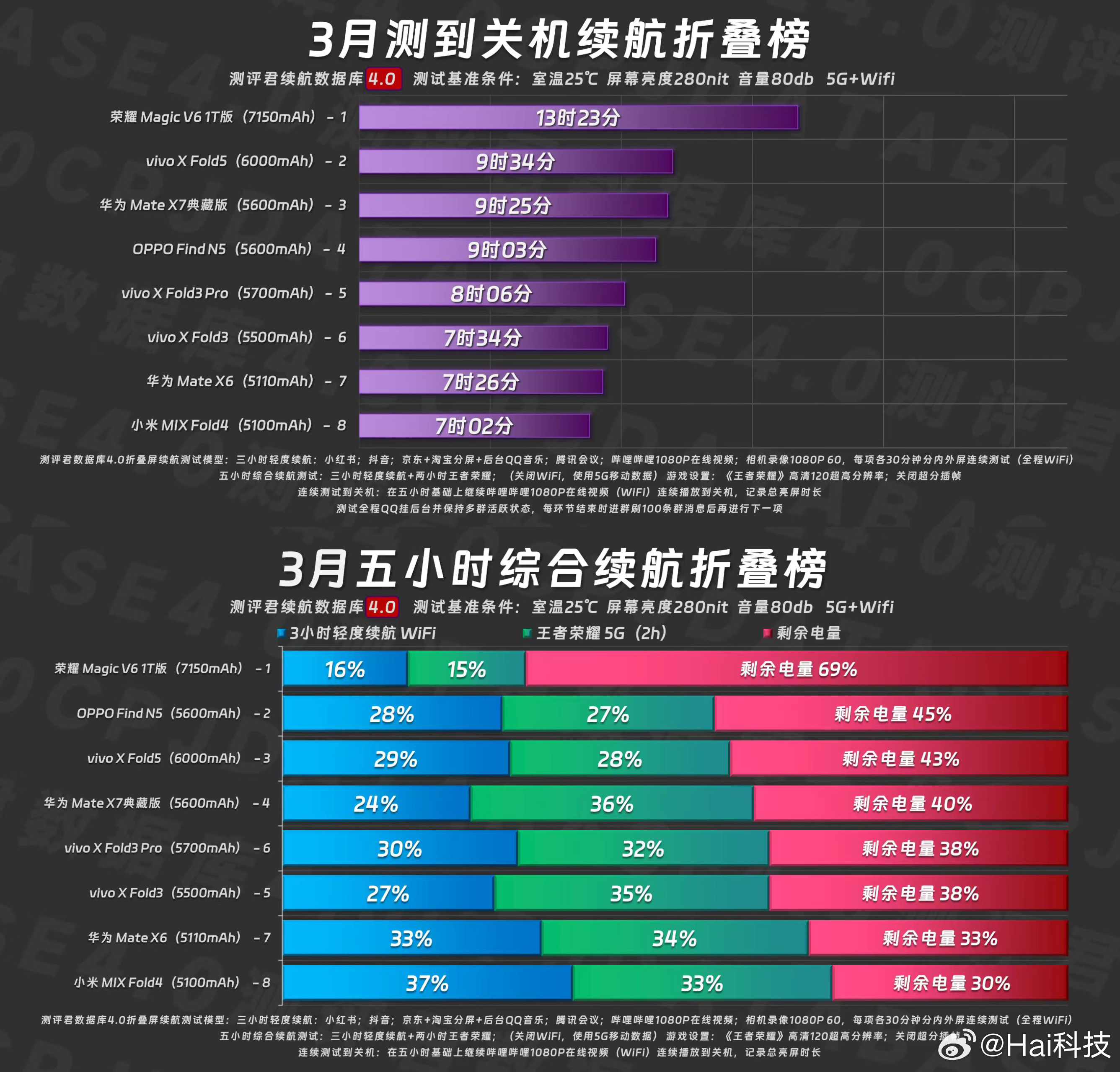 折叠屏迈进7000mAh大电池时代荣耀MagicV6续航第一双霸榜