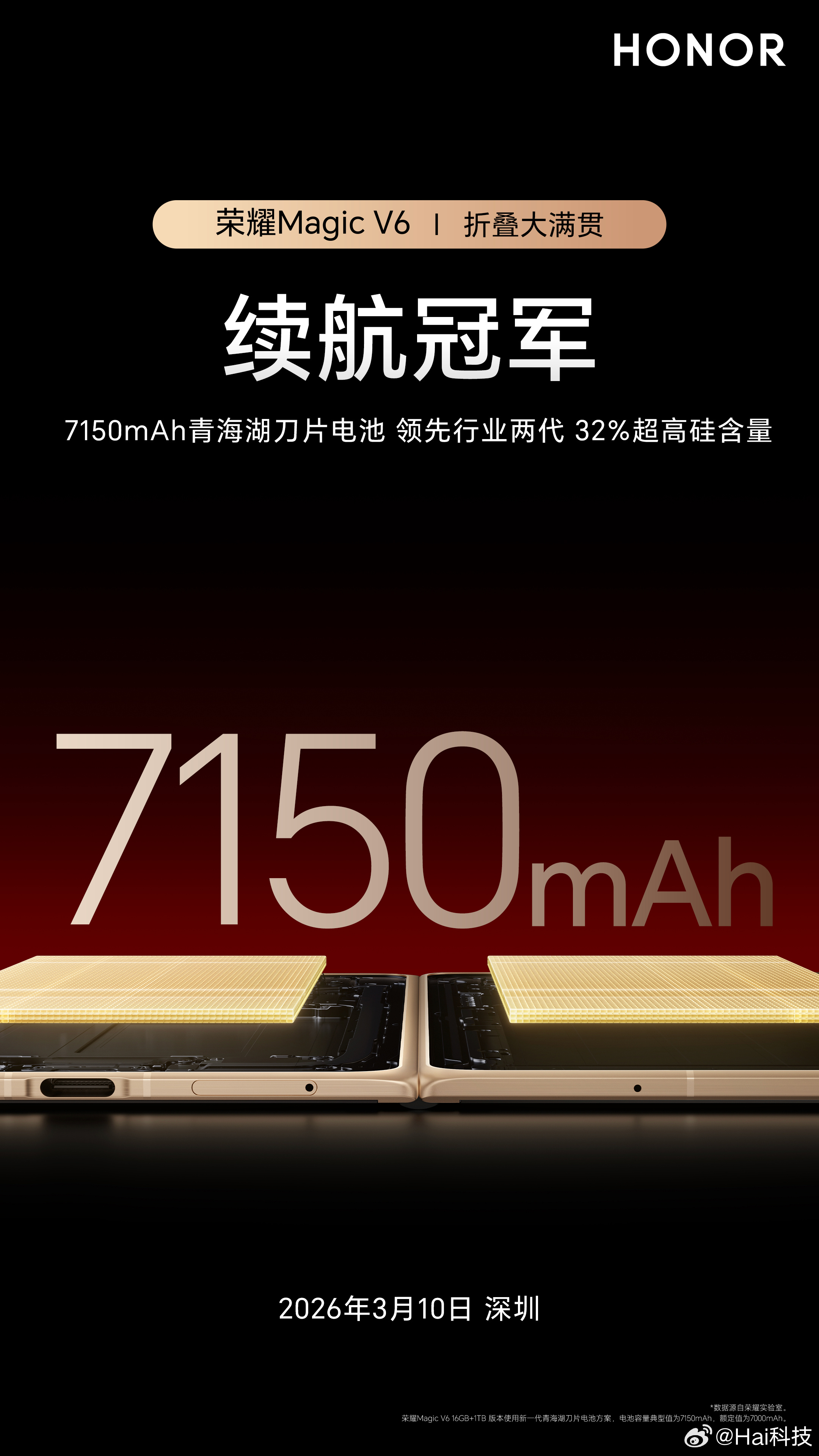 无论打什么局,血厚的优势都非常明显。而电量就是折叠屏的血条。荣耀Magic V6今天公布的续航测试都被它屠榜了,牢牢占据各家媒体的续航榜单前两位,而且是断层式领先。尤其是它的7150mAh青海湖刀片电池,高硅含量达到32%,更是领先行业两代。血厚当然就抗造,8核的第五代骁龙8至尊版芯片就有了充足的发挥空间。顶尖旗舰,性能本来就不应该打折。开始期待3月10日的国内发布会了。
