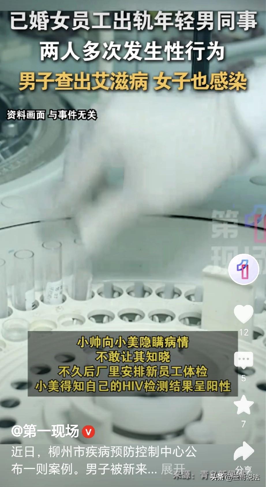 “这就是不检点的下场!”广西柳州,一30岁女子在工厂上班,被20多岁的男组长看上,男组长趁她丈夫不在,多次和她发生了关系,男组长为了尽兴,任何安全措施都不带,结果在体检中,女同事被查出HIV呈阳性,女同事急了,丈夫不在家,肯定是男子有问题,她质问男子,这才得知,男子故意隐瞒了他患有艾滋病。 一女子30多岁,她为了生计,到一家工厂里上班,她分到一个班组,班组里的组长是一位20多岁的年轻男子。 男子年轻有为,年纪轻轻,就做出了成绩,他担任一个班组的组长,前途无量,本来会有更好的发展。 可是,他不管不顾,一看班里新来的女同事,虽然比自己大了几岁,可是女子非常的美丽。 男子立刻就动心了,他不再乎年龄,立刻对女子展开了追求。 女子开始并没有理他,并且告诉他说,自己已婚,已经生有一个孩子。 可是,她的话并没有让男子退步,反而令男子更加的上头。 男子对她热情有加,请她吃饭,送她礼物,接送她上班,满足她的一切要求。 没过多久,女子就招架不住,她的丈夫长年在外,因为工作不能经常回来。 女子一个人独守空房,她孤单寂寞,不由的对男子动起心来。 随着感情的深入,俩人在一次约会时发生了关系,女子有了依靠,她的感情越发的投入。 女子告诉了男子,自己的丈夫长期不在家中,男子更加的高兴,这就意味着说,他可以经常和女子在一起相处。 随着时日加深,俩人的感情越发的深厚,他们频繁的约会,以满足各自的需求。 开始的时候,男子还像模像样,做了一些安全措施,可是到了后来,他连这些都懒得做了。 他开始不管不顾,肆意挥洒自己的热情,他为了自己的享受,全然不顾女子的身体情况。 女子开始很不满意,拒绝了几次,拗不过男子不断的要求,男子为了尽兴,已经到了无所顾忌的程度。 在他心里,认为女子就是他的人了,他已经追求到手,他愿意咋办就咋办了,反正女子丈夫不在,他就是女子的正牌男友。 当时流感高发,小帅突然发起了低烧,还伴随着头痛腹泻,他以为是普通感冒,抗了几日,这才去大医院检查。 可是,大事不好,当医生拿着HIV阳性的化验单告诉他感染艾滋病时,男子腿都软了。 他第一反应就是不能让女子知道,他怕失去女子,更怕自己名声扫地。 他装的若无其事,继续和女子保持见面的频率。 他甚至不做任何保护的措施,两次和女子进行了亲密活动,女子浑然不知,依旧和男子保持着联系。 可男子没有想到,工厂组织新员工体检,女子也在其中,检查时她没多想,直到收到医院的通知。 医生拿出体检报告,显示女子的HIV检测为阳性,天都塌了,这可叫她怎么活下去? 女子认为,她除了老公就只有男子,老公长期不在,那就是男子无疑了! 女子崩溃,想起来他俩在一起的点点滴滴,她本以为,男子对自己是真心的爱惜。 此时此刻,她才知道这是骗局,男子只顾自己,根本对她不管死活。 她去质问男子,说自己检查出了HIV阳性,她老公不在,那这个感染源来自哪里?确认无疑,肯定就是男子! 男子自顾自还在狡辩,这次女子再也不肯相信他了,女子要去报警,男子这才说出来实话。 就是他在俩人交往不久,男子就发现自己感染了HIV,他之所以隐瞒真相,只是因为他太爱女子。 可事到如今,真相大白,男子害人害己,等待他的是法律的制裁。 《刑法》第三百六十条规定: 明知自己患有梅毒、淋病等严重x病,卖y、PC的,处五年以下有期徒刑、拘役或者管制,并处罚金。 男组长明知自己感染艾滋病的情况下,不仅没有告知女同事,还多次与她发生无保护x行为,主观上存在故意传播的意图。 他为了满足自己的私欲,丝毫不顾忌女同事的生命健康安全。 一旦查实,男组长难逃罪责,他已经触犯了刑法,终将会为自己的恶行付出代价。 《民法典》第1165条规定: 行为人因过错侵害他人权益造成损害的,应当承担侵权责任。 男组长故意隐瞒自己患有艾滋病的事实,与女同事发生 关系,导致女同事感染艾 滋 病,给女同事的身体和精神都造成了极大的伤害。 女同事因此产生的医疗费用、误工损失,以及长期遭受的精神折磨等,都属于损害后果。 男组长存在明显的过错行为,且该行为与女同事的损害结果之间存在直接的因果关系。 因此他必须承担相应的民事赔偿责任,赔偿女同事因此遭受的各项损失,以弥补她的伤害。 有人认为,男子有错,女子也有错! 是这女子太不检点,如果她能恪守底线,守护家庭,哪里还会发生这样的事情? 如今她也感染了病情,婚姻能不能保住,都很难说,最无辜的就是孩子,有母如此,真是天都塌了! 对此,你怎么看?欢迎评论区留言讨论。