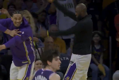 老詹也是,队友进球坐着都不鼓掌,太子进球,疯狂庆祝