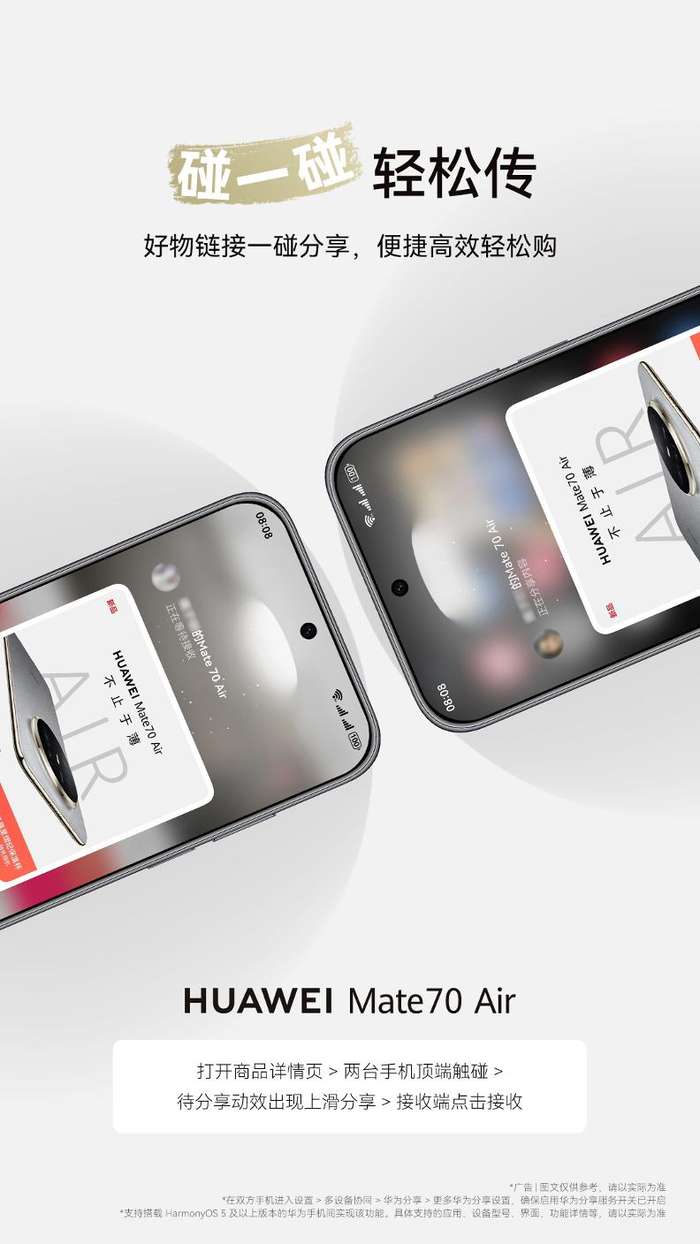 与此同时,HarmonyOS 6全面增强了全场景互联能力。碰一碰分享功能已拓展至60多个应用,无论是快速传输照片、音乐、链接,还是实现一碰多分享、游戏组队等互动体验,乃至手机与电脑间的跨设备协同,都实现了更高效、无缝的联动,进一步提升了设备间的联动效率,减少了跨设备操作成本。可以说在鸿蒙生态日渐完善下,HarmonyOS 6为华为Mate 70 Air带来了越用越好用的使用体验。