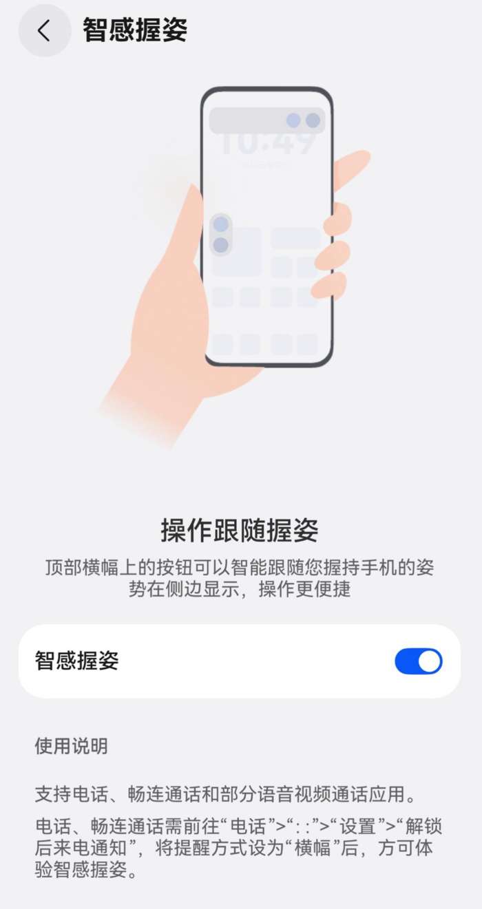 此外,HarmonyOS 6也进一步释放了华为Mate 70 Air的硬件潜力。实况窗、智感扫码等功能在高频使用场景中提升了操作效率。再加上智感握姿这个超便捷的功能,通过智能识别握持手的姿势,左右手切换也能更快速接听,对于手小的用户,这个解决方式真的有被爽到。同时,系统在多任务调度、界面响应与交互细节上的优化,也让分屏切换、应用呼出、页面跳转等操作更为跟手,不会因屏幕尺寸增大而显得迟滞。