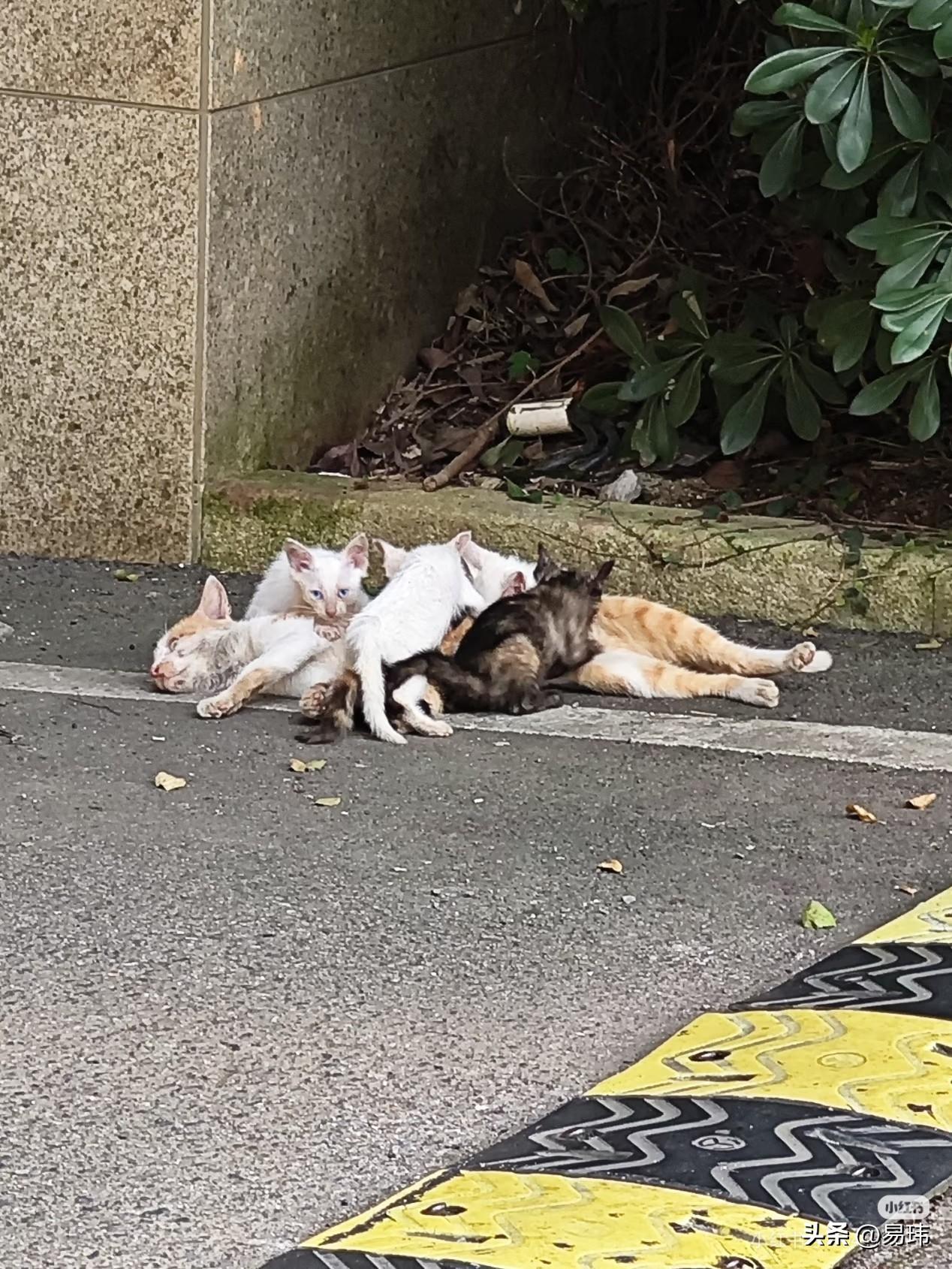 太可怜了!一位小姐姐经常投喂一只流浪猫妈妈,经过她的悉心照料下,猫妈妈生了一窝小奶猫,小姐姐非常开心,更加努力的投喂它们,猫妈妈一家也非常喜欢她,每次看到她都会老远跑过去和她玩耍。 这天她和往常一样去投喂它们,当她来到它们经常出现的地方,却看到了无比凄惨的一幕,那只猫妈妈居然倒在地上已经失去了呼吸,它的孩子们却依旧在围着妈妈喝奶,这一幕令小姐姐无比难过。可也没有办法,她只好把猫妈妈安葬,之后把小猫们带回去收养,相信在她的照顾下,小猫们也会越来越好的。