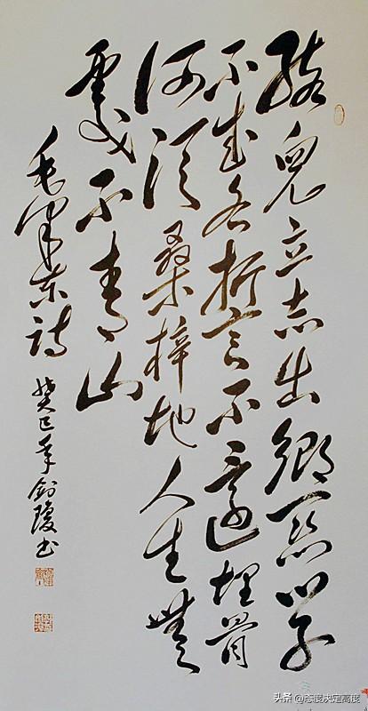 墨韵千秋,少年壮志跃纸上 泼墨浓淡。百年热血与赤诚凝于一纸 。 毛体书法。笔走龙蛇,力透纸背。 “孩儿立志出乡关,学不成名誓不还” 。 十七岁少年。离别韶山冲的决绝,跃然字间。 不甘井底。奔赴风雨,经风雨、见世面 。 “埋骨何须桑梓地,人生无处不青山”。 字里行间。大丈夫志在四方的豪情,觉醒的初心 。 一首诗。青春的宣言,救国救民的初心启航 。书法毛体字